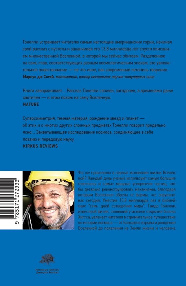 Гвидо Тонелли, совмещая знания ученого и вдохновение поэта, проводит читателя через 13,8 миллиарда лет существования Вселенной и показывает, что миф и наука, по сути, играют одну и ту же роль: позволяют человеку определить свое место в мироздании.