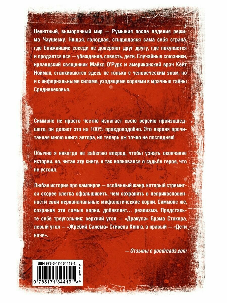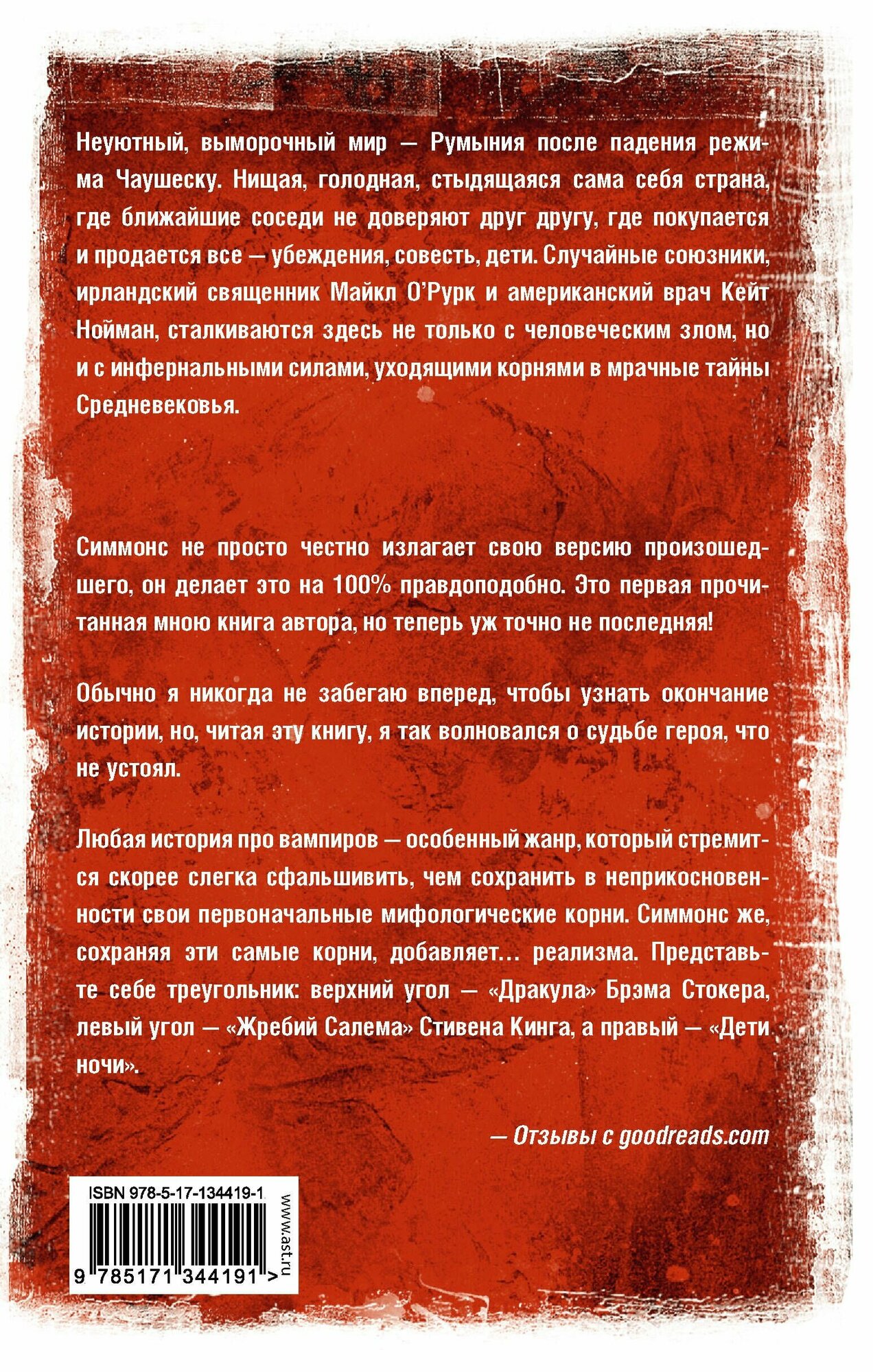 Автор сразу же с первых страниц задаёт мрачный тон книге. Атмосфера разрухи, нищеты, социального неравенства и беспредела Румынии очень хорошо описана. Симмонсу снова удалось красочно передать всё это как в своём дебютном романе "Песнь Кали". Если вы ждёте от книги что-то в духе "Лето ночи", то здесь этого не будет. Роман более зрелый и поднимает огромное количество наболевших тем в нашем мире. Одну из главных ролей в произведении будет играть уже всем знакомый повзрослевший Майкл О\'Рурк. Жёсткие сцены, красочные битвы здесь на высшем уровне. Между основным сюжетом будут воспоминания Влада Цепеша (Дракулы) вот они просто восхитительны. Атмосфера тех кровавых времён просто бесподобна. Роман вышел отличным. Всем рекомендую.