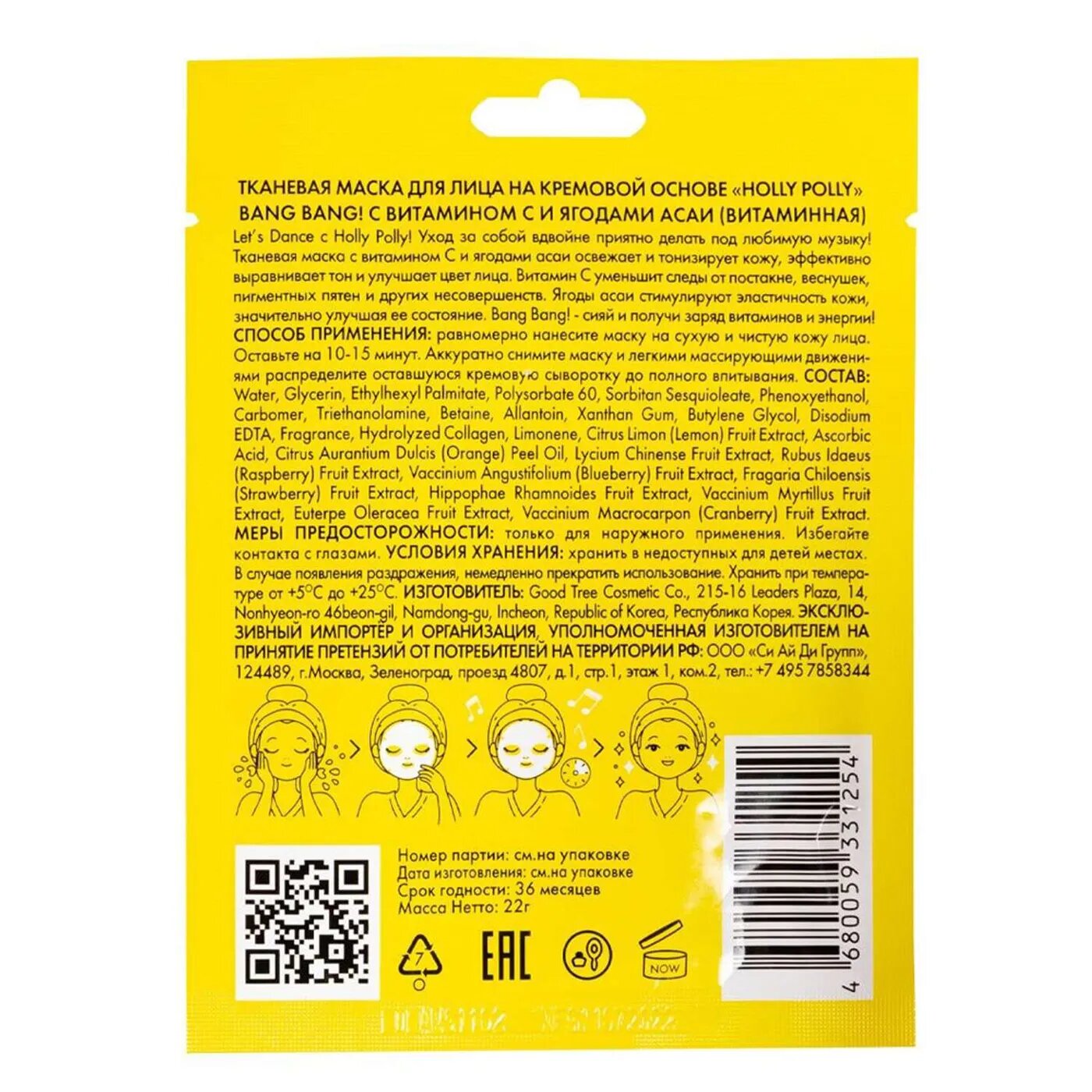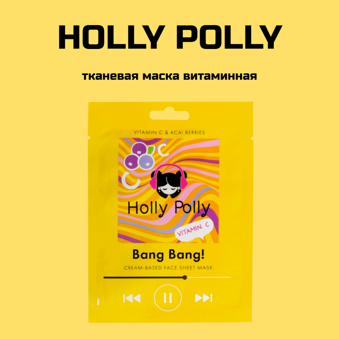 Holly Polly Витаминная тканевая маска с витамином С и ягодами асаи Bang Bang! на кремовой основе 22 г (Holly Polly ) (ЭХ99989429475)