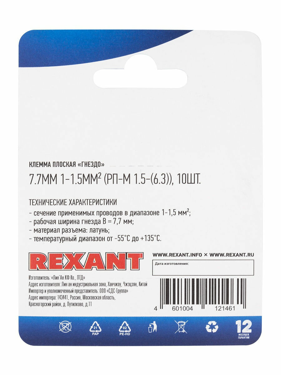 | Ширина | 7.7 мм (рабочая ширина гнезда ) |