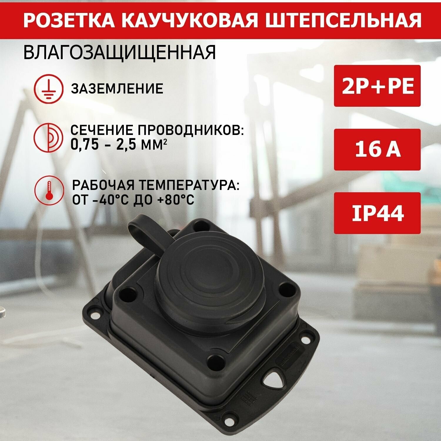 Электрическая розетка из каучука предназначена для использования в сложных эксплуатационных условиях и широко применяется в производстве, строительстве и машиностроении. Она легко монтируется, имеет высокую надежность и долгий срок службы. Ударопрочный разборный корпус выполнен из каучука — полимерный материал, сочетающий внешний вид, упругость и эластичность обычного каучука и эффективность обработки пластмасс. Отличная износостойкость при изгибе Хорошие электрические свойства Хорошая стойкость к разрыву и истиранию. Высокий диапазон рабочий температур Высокая стойкость к ударам Низкий удельный вес Отличная стойкость к химикатам и атмосферному воздействию. Розетка оснащена защитной крышкой.