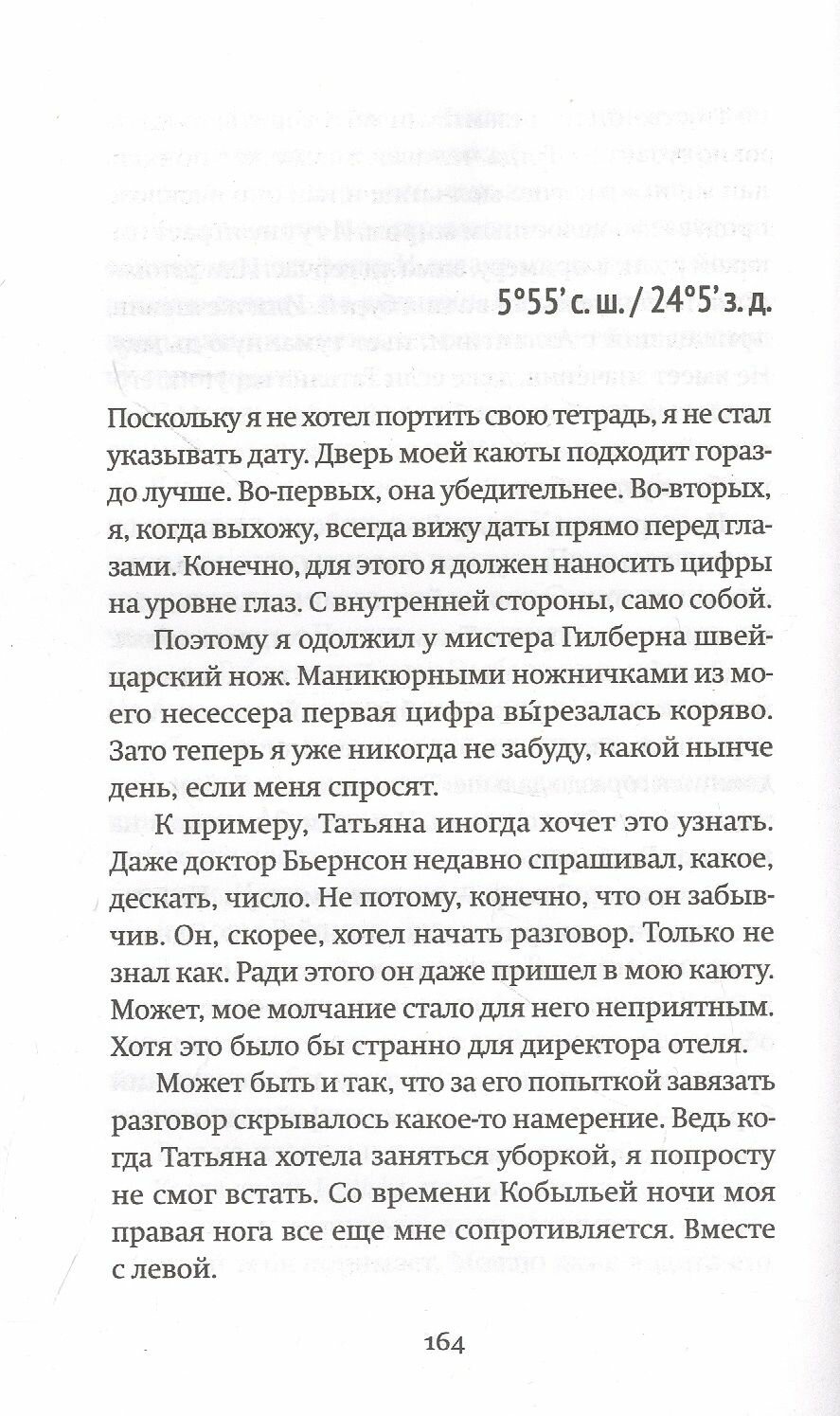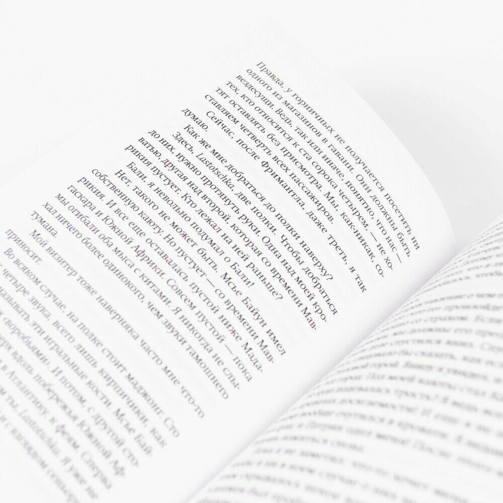 Повествование медитативное, пронизанное метафизикой и атмосферой тягучего сна. Путешествие по морю для героев оборачивается неким действом больше похожим сплавом по Стиксу, потусторонним существованием, границы текста размывают явь и действительность. Книга, одним словом, завораживающая. Оформление соответствует содержанию - оно качественное. Красивая и крепкая обложка, печать четкая, шрифт комфортный