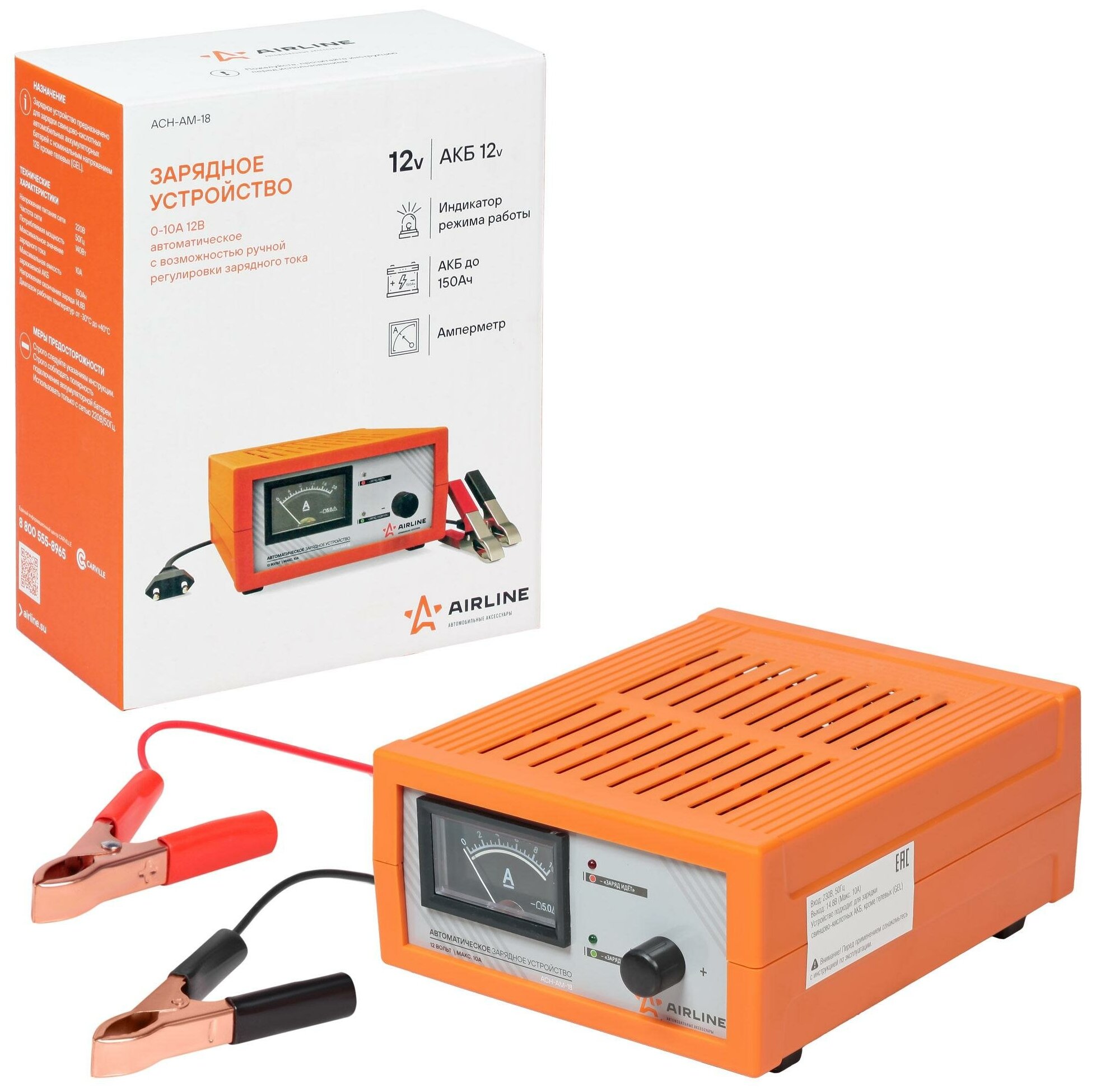 Зарядное устройство AIRLINE 0-10А 12V амперметр ручная регулировка зарядного тока импульсное (ACH-AM-18)
