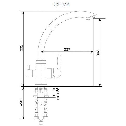 - Дополнительный излив для фильтрованной воды (кран-букса с керамическими пластинами).
