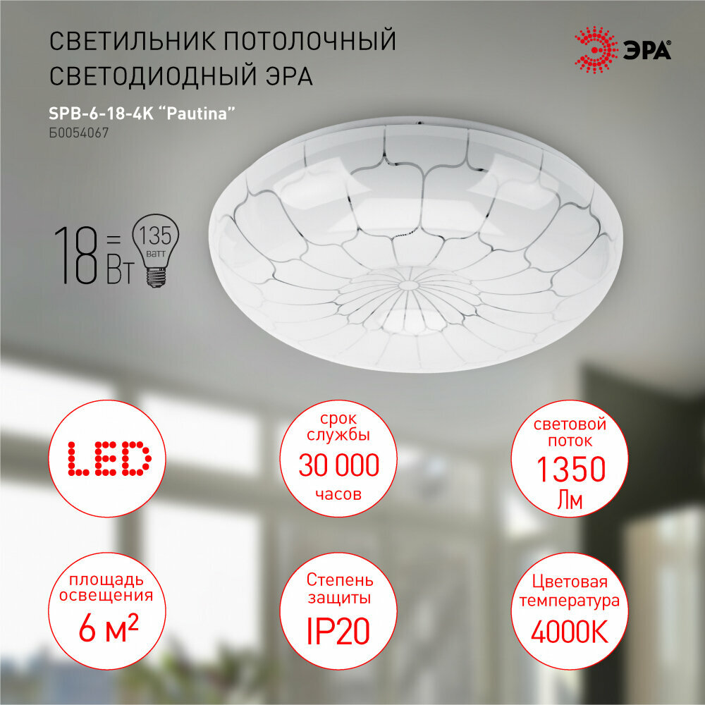 Потолочный светодиодный светильник Эра SPB-6-18-4K Pautina (Б0054067)