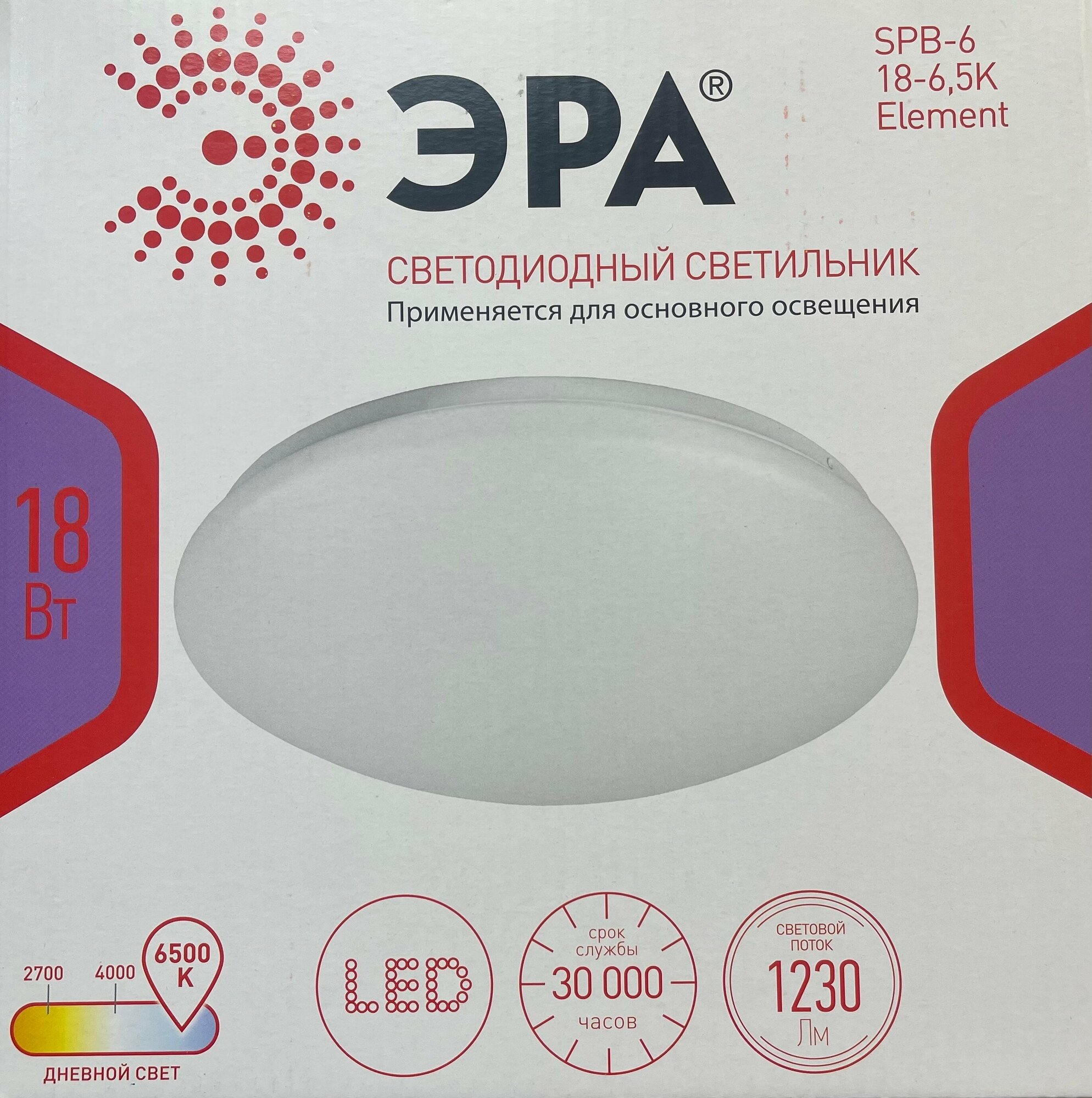 Потолочный светодиодный светильник Эра SPB-6-18-65K Element (Б0054048) Классик SPB-6-18-6,5K Element