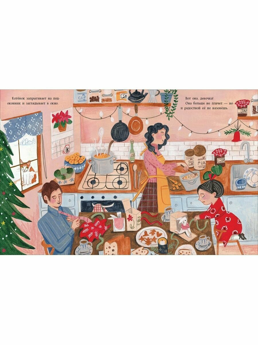 Приближается зима, а вместе с ней и праздники. В непростые времена особенно заботишься об эмоциональном состоянии, общении с близкими, домашнем уюте. В этом году хочется вдвойне обрадовать ребёнка, создать новогоднюю атмосферу в семье и в доме. Поэтому купила несколько тематических книг, в том числе и эту. Изначально привлекли иллюстрации — в скандинавском стиле, уютные, праздничные. Передают дух традиционной рождественской сказки, европейского праздника. Долго рассматривали пряничные домики, милых котиков, ёлочки, гирлянды, новогодние украшения, праздничные блюда. История очень трогательная, с добрым концом. Про котика, который мечтал о доме. Про людей, которые мечтали о счастье. По всем традициям новогодних сказок. Хочется, чтобы и дети, и взрослые в этом году убедились в том, что праздничные желания сбываются.