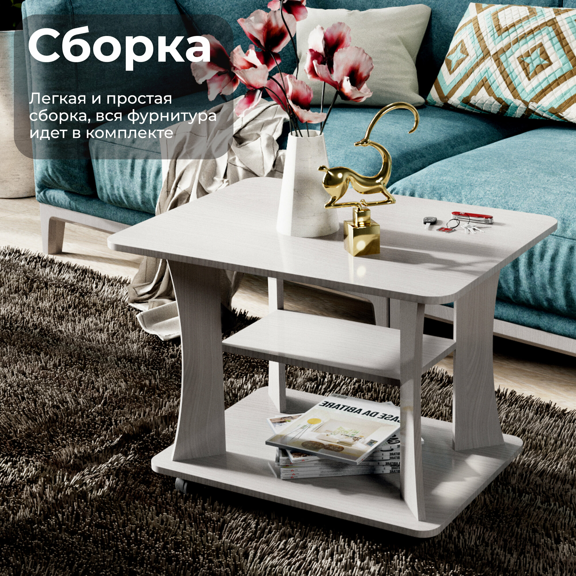 Журнальный стол Тип 8 - классический минималистичный дизайн, сбалансированная конструкция, доступная цена и разнообразие расцветок набора позволяют приобрести подходящую модель для помещения, оформленного в любом стиле. Столик оснащен колесиками с поворотным механизмом - 360, что делает его мобильным. Сочетает в себе компактность и функциональность, подойдет в любой интерьер разного типа: спальня, прихожая, детская, дача. Идеально подойдет для работы с ноутбуком. В нем расположены две полочки для удобства хранения вещей. Столешница имеет скругленные углы. Данная модель мебели выполнена из прочного безопасного ЛДСП - 16 мм. Он представляет собой качественной продукцией и экологически чистым изделием. Отличное решение как мебель в гостиную для вашего дома, использовав его как придиванный стол.Поставляется в разобранном виде. Все технические отверстия сделаны на производстве, фурнитура для сборки и инструкция идет в комплекте, также инструкцию Вы можете найти в карточке товара. Прежде чем приступить к сборке, необходимо убедиться в качестве, количестве и соответствии всех деталей. Если таковые выявлены, незамедлительно свяжитесь с площадкой и продавцом, для разрешения вопроса, не приступая к сбору изделия.Товар после сборки возврату и обмену не подлежит.