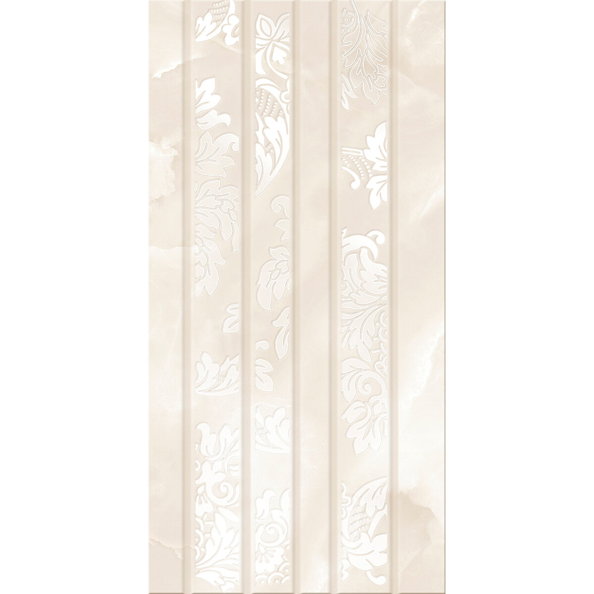 Керамическая плитка Azori Latila Struttura 508951101 настенная 31,5х63 см, под камень, в полоску, с цветочным орнаментом, цвет бежевый.