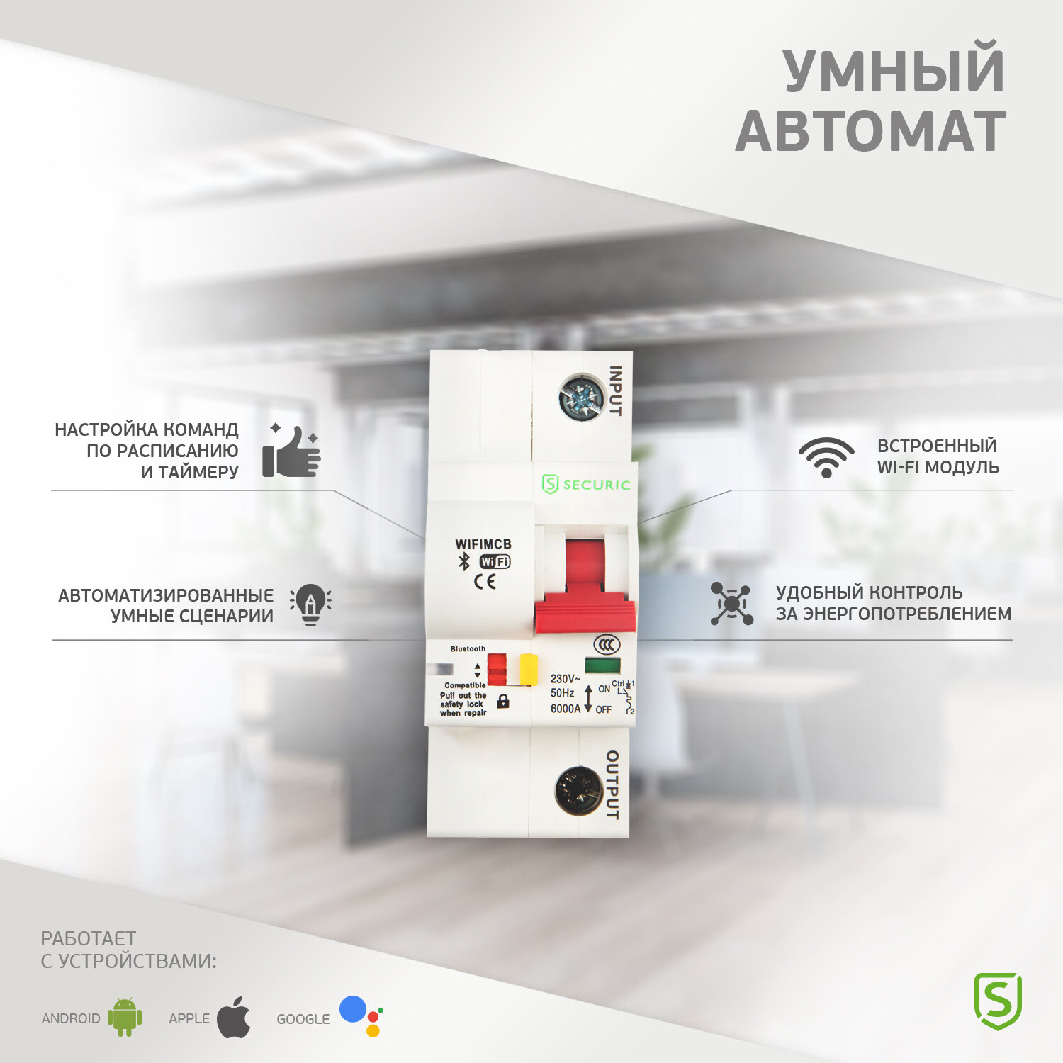 Умным однополюсным автоматом SECURIC можно управлять удаленно, не находясь дома. Главное, чтобы данное устройство было привязано к Вашей сети Wi-Fi. С помощью этого изделия обеспечивается включение или выключение подключенного к нему оборудования (световые/электрические устройства). Управление выполняется как через приложение SECURIC Smart Life, так и вручную, благодаря переключателю на корпусе. Совместим с Алисой. Легко монтируется на DIN-рейку.