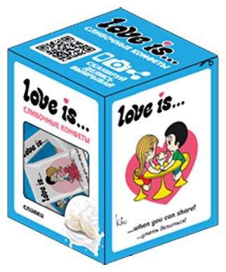 Художница Ким Гроув и программист Роберто Каcали познакомились в 60-х годах и полюбили друг друга. Романтичная Ким рисовала на салфетках двух пупсов, похожих на неё и её супруга, а также писала милые, автобиографические пометки. К сожалению, их брак продлился около 15 лет – а затем Роберто умер от рака. Но истории остались жить – правда, теперь их рисует Билл Эспри. Он, кстати, даже не знал, что в Турции выпускается жвачка с его иллюстрациями - ведь правообладателем является компания Minikim во главе с сыном пары, Стефано Касали. Специально для вас – нежные сливочные конфеты в симпатичной упаковке.