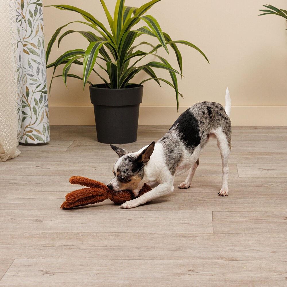 - У животного не должно быть возможности проглотить изделие целиком или какие-либо его части. Если любимец склонен к поеданию несъедобных предметов, давайте игрушку под присмотром.