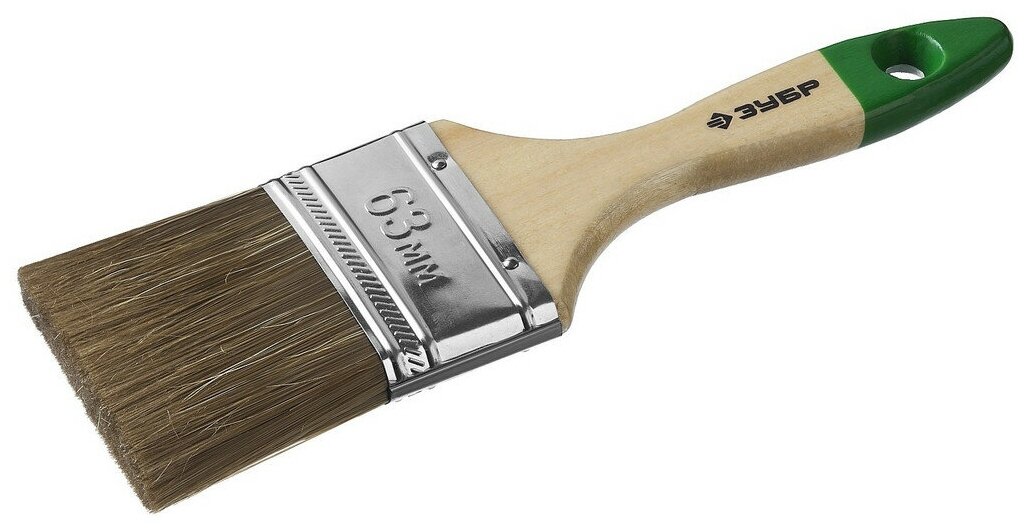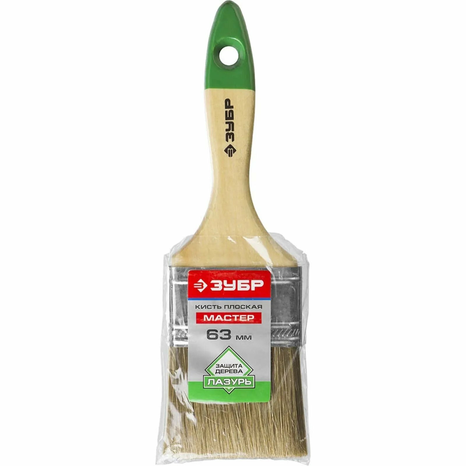 Кисть плоская Зубр Лазурь-Мастер 4-01009-063, смешанная щетина, деревянная ручка, 63мм