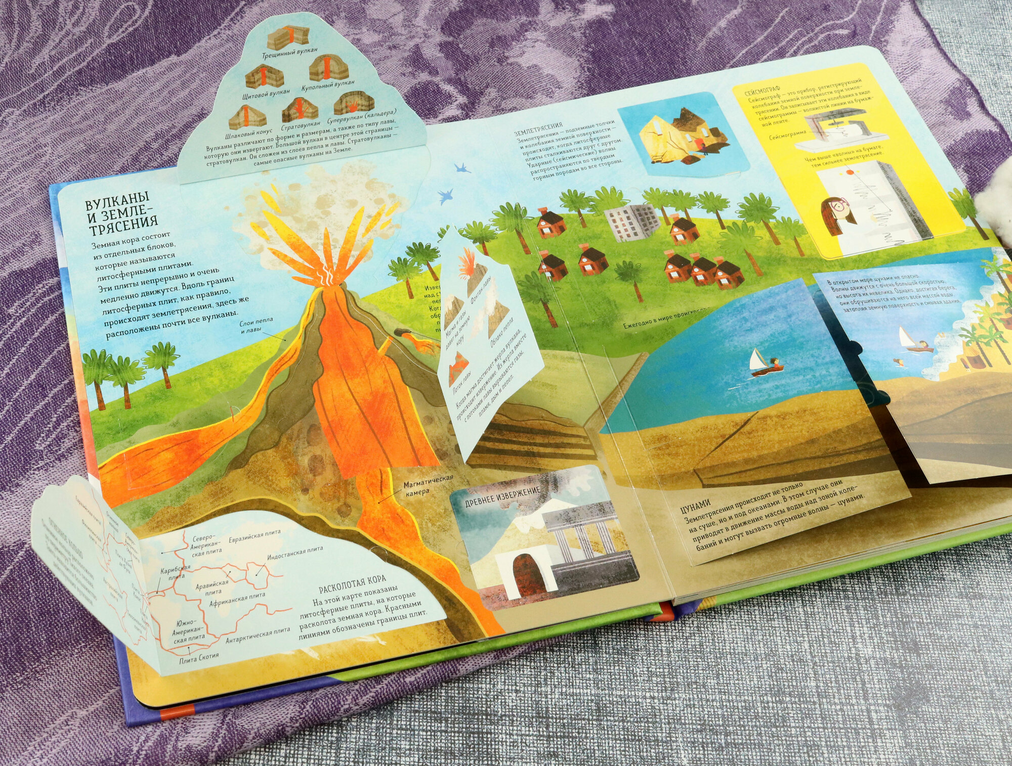 Книга очень яркая, симпатичная и в то же время не перегруженная. Самое главное, что все окошки плотные, как и сами страницы, то есть не отрываются от парочки открываний. Книга, очевидно, современная и в отличие от школьных зазубриваний, например, слоев атмосферы, ребенок видит это строение наглядно и сам начинает интересоваться, задавать вопросы и дальше углубляться в тему. В общем супер, плюс из этой же серии есть книжки на другие темы, так что можно добирать коллекцию по интересам в одном стиле.