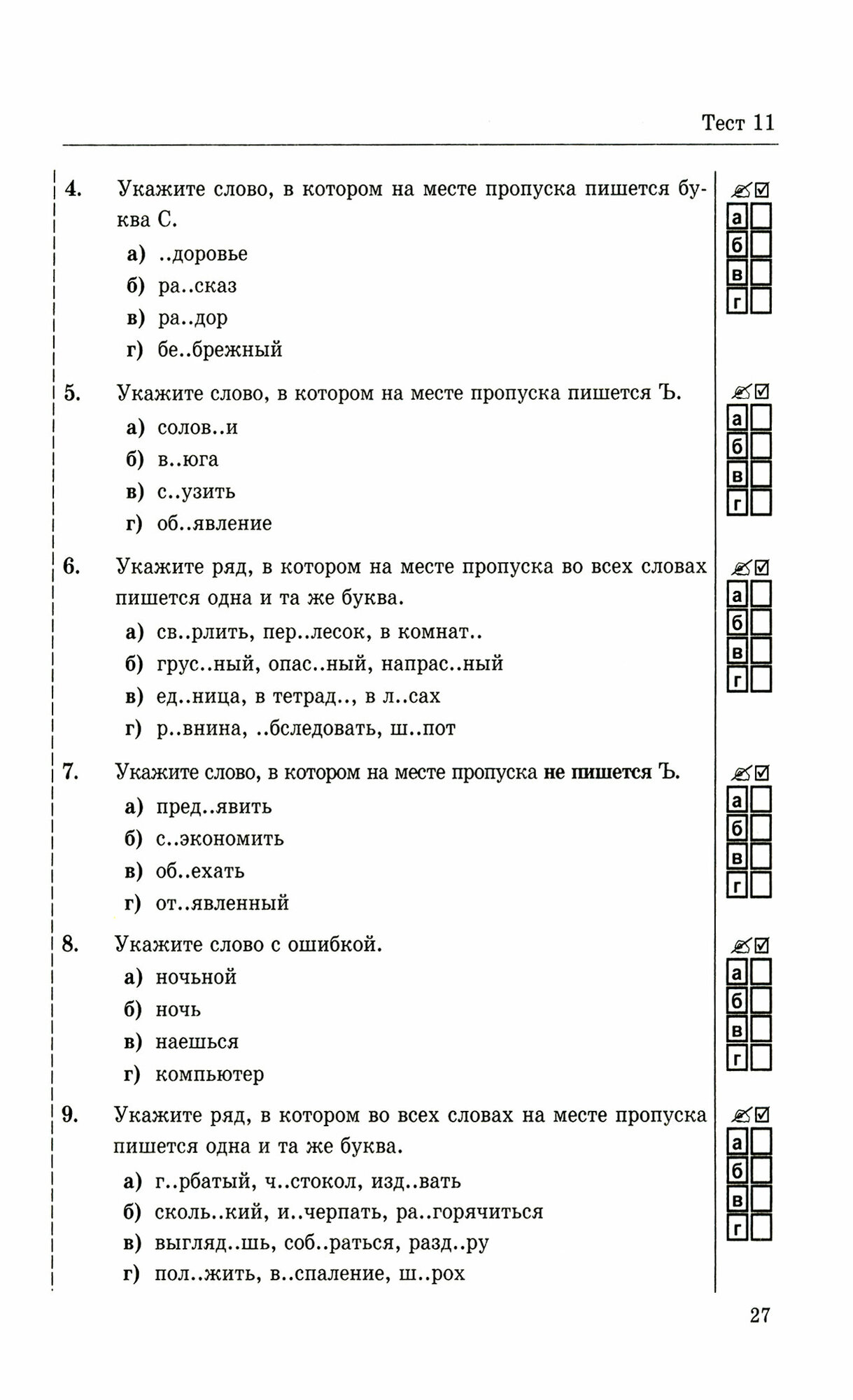 Пособие содержит тестовые задания для повторения и усвоения изучаемого материала, проверки знаний. Предлагаемые тесты позволят целенаправленно и систематически работать над изучаемым материалом, системно повторять ранее изученные разделы, формировать навыки и умения грамотного письма, выявлять пробелы в знаниях, вести на уроках систематическую коррекционную работу, поэтапно готовиться к Основному государственному экзамену и Единому государственному экзамену.
