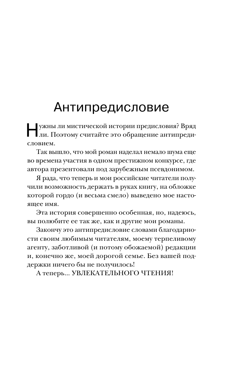 Очень интересная книга! Захватывающий сюжет, который держит в напряжении до самого конца, мозг постоянно работает в поисках ответов и выдумывая дальнейшие события. Автору удалось очень реально описать мистическую состоявляющую книги, очень эмоционально до мурашек, местами было ну очень жутко, а если ещё и сам веришь в мистику и сталкивался с необъяснимым в жизни, то это очень круто, будто сам побывал на месте героини и испытал все её эмоции и страхи! Я будто фильм посмотрела, настолько всё было реалистично описано! Лена в этом большой мастер, но она не перестаёт удивлять своим талантом! Очень понравились герои, они живые, яркие и очень разные!