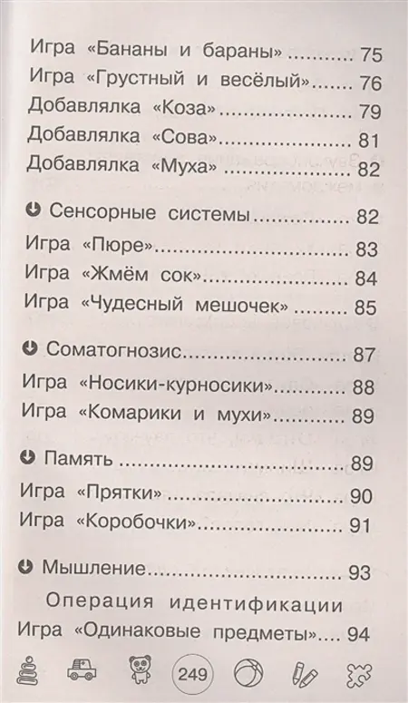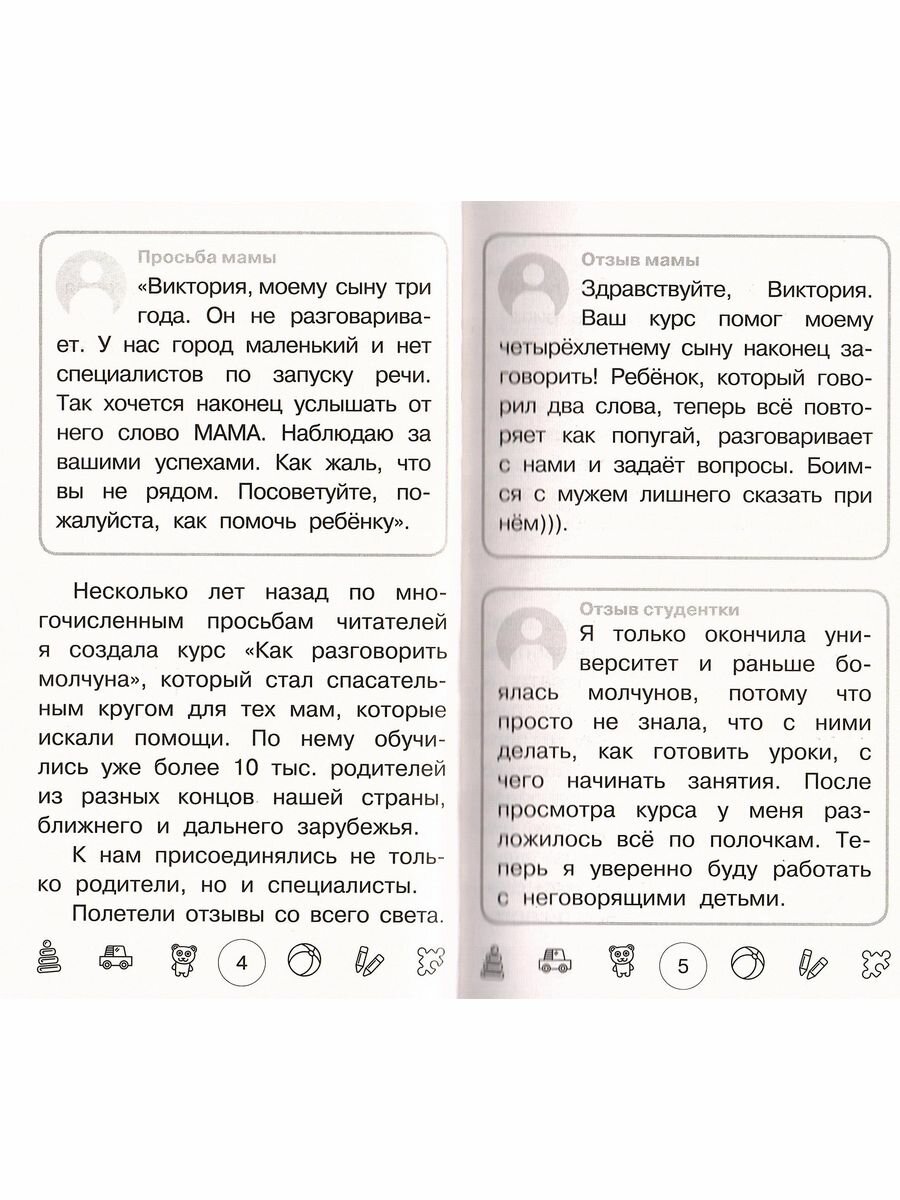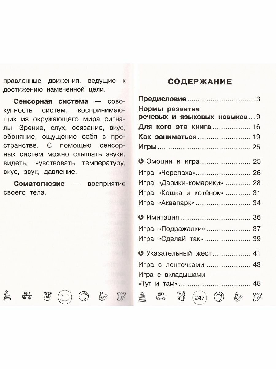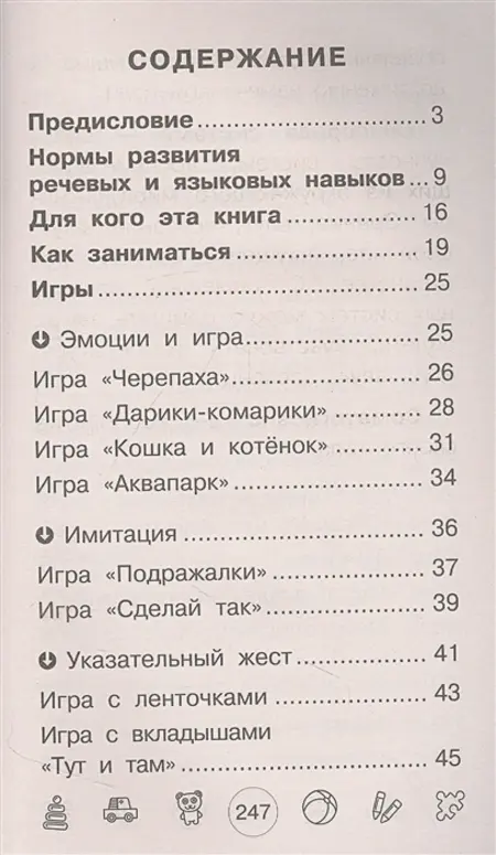 Решилась на приобретение книги как только смогла в магазине полистать. Очень содержательное пособие для запуска речи получилось, и в моем случае с неговорящим малышом, как самая настоящая находка. Многие игры начального уровня очень просты и легко выполнимы ребенком. Логика книги такова, что игры сгруппированы по блокам, каждый из которых развивает то указательный жест, то на проявление эмоций, звукоподражаний, тренировка памяти и т.д. Игры большей сложности представлены в конце книги. Жаль, что эту книгу поздно нашла, будем теперь наверстывать по ней упущенное время.