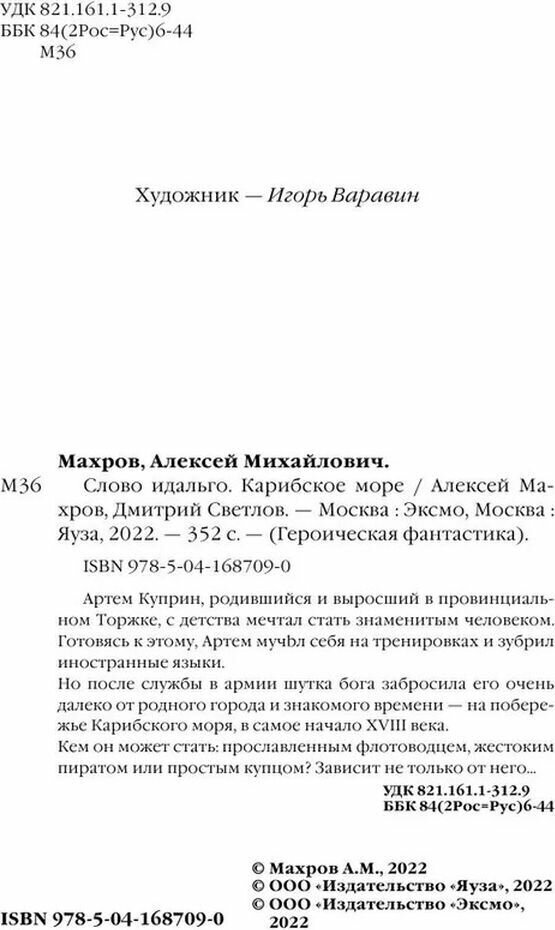 Сервис сравнения цен СкидкаГИД предлагает сравнить цены на товар «Книга: Слово идальго. Карибское море (Алексей Михайлович Махров, Дмитрий Николаевич Светлов); Эксмо, 2022»