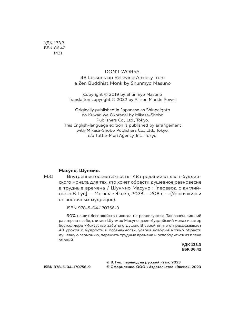 Внутренняя безмятежность. 48 преданий от дзен-буддийского монаха для тех кто хочет обрести душевное равновесие в трудные времена (Масуно Шунмио); ООО "Издательство "Эксмо", 2022
