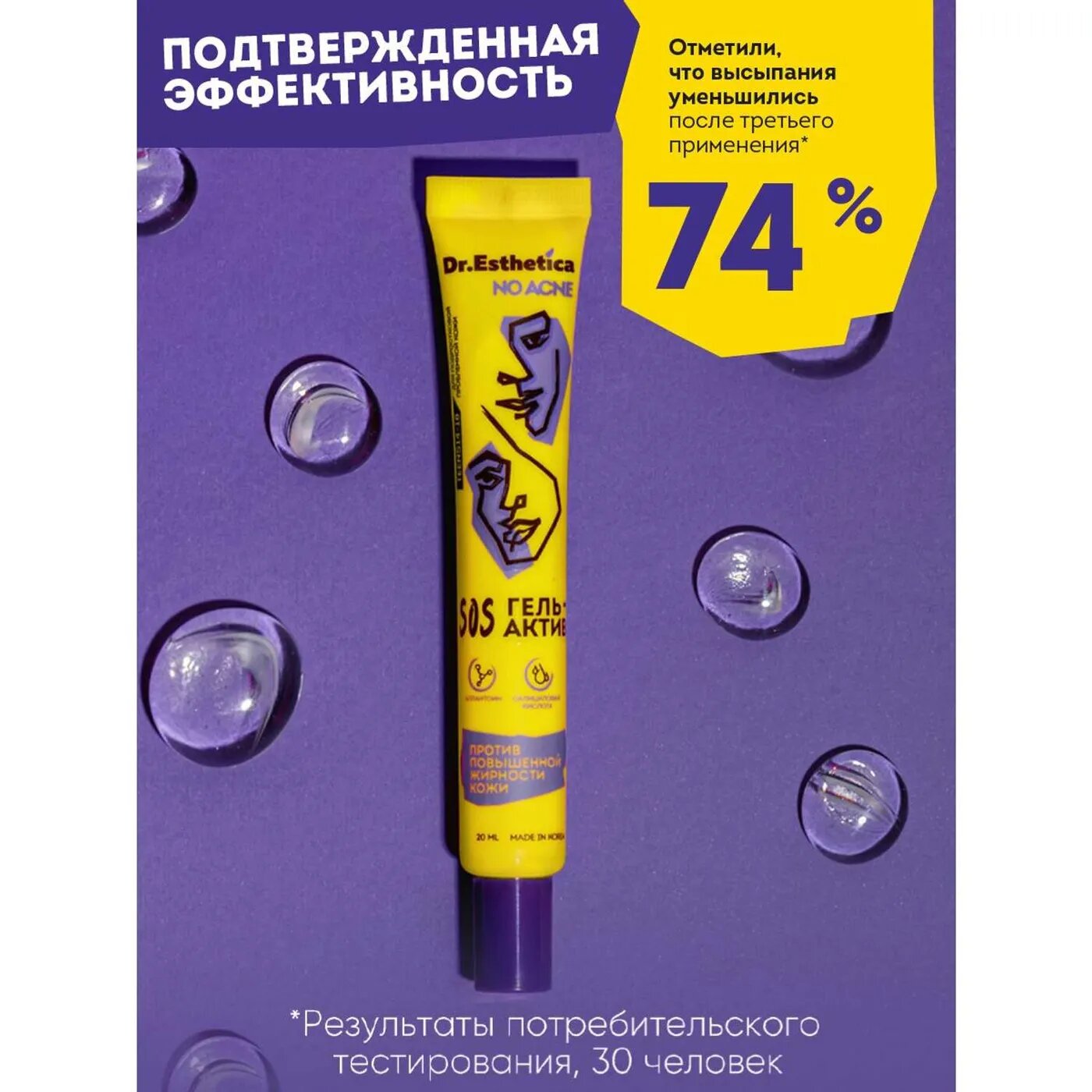 По результатам потребительского тестирования, в 74% случаев гель-актив уменьшил высыпания на коже уже после 3-го применения. Sos гель-актив Dr. Esthetica NO ACNE - лучшее экспресс-решение от акне и прыщей, которое быстро приведет кожу в порядок и вернет уверенность в себе.