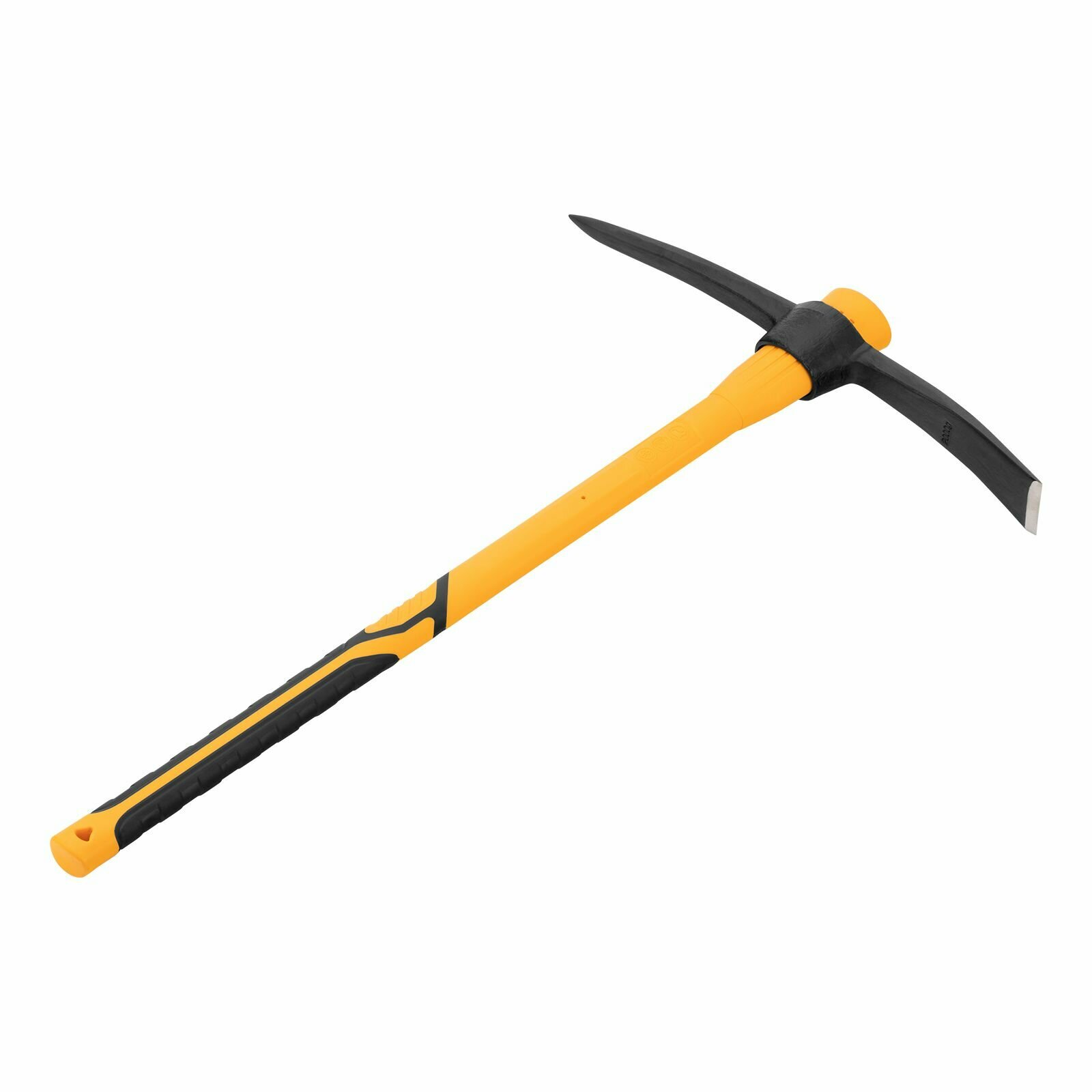Кирка Denzel длиной 900 мм, с узкой рабочей частью, головой весом 2000 г и фибергласовой обрезиненной рукояткой, предназначена для работы по камню, рыхления каменистого, пересохшего земляного и глиняного грунта. Может использоваться для разрушения старой кирпичной кладки и колки льда. Инструмент будет полезен на строительной площадке и дачном участке.