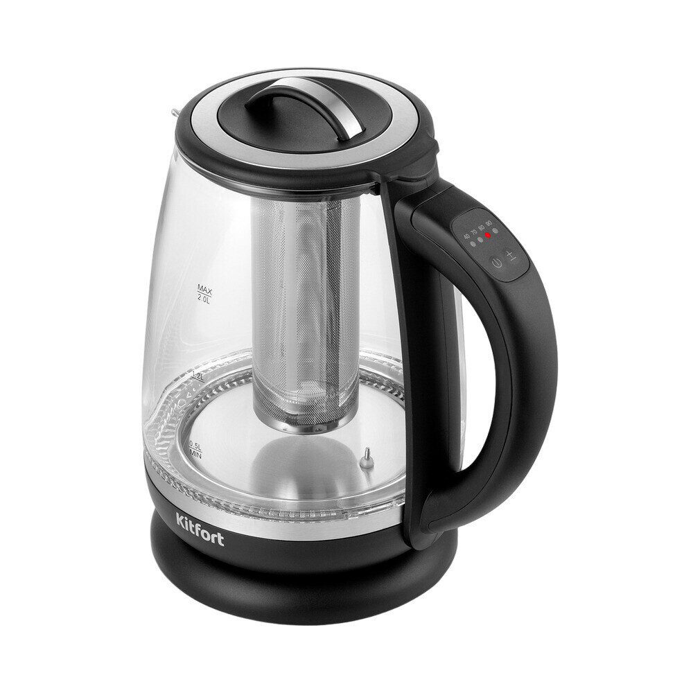 Вместительный чайник ёмкостью 2 л Kitfort КТ-6145 может вскипятить воду или нагреть её до температуры 40, 70, 80 и 90 °С, что удобно при заваривании различных сортов чая, приготовлении кофе. Чайник также оснащён функцией поддержания температуры.