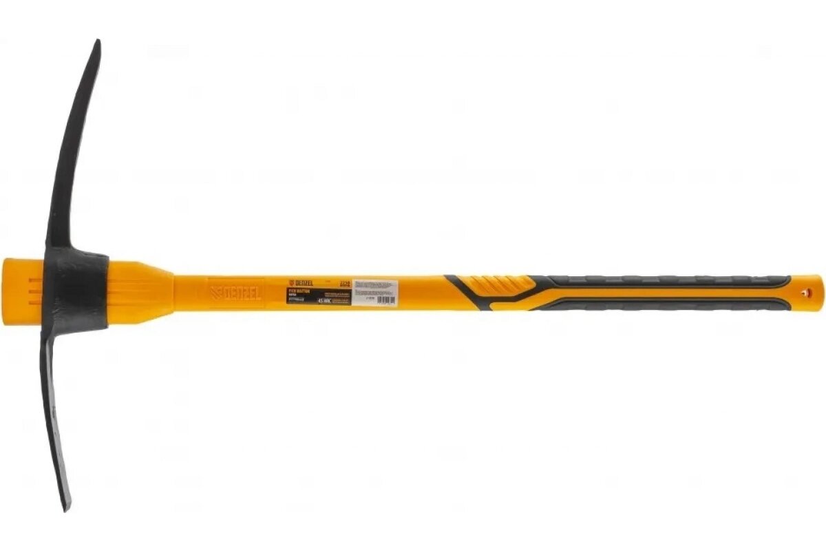 Кирка Denzel длиной 900 мм, с широкой рабочей частью, головой весом 2250 г и фибергласовой обрезиненной рукояткой, предназначена для работы по камню, рыхления каменистого, пересохшего земляного и глиняного грунта. Может использоваться для разрушения старой кирпичной кладки и колки льда. Инструмент будет полезен на строительной площадке и дачном участке.