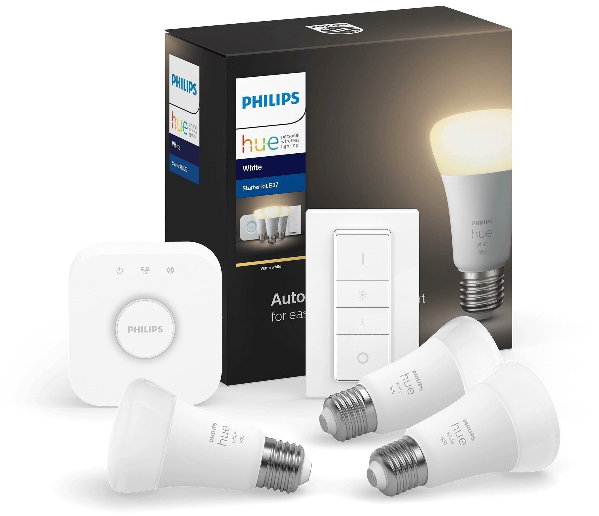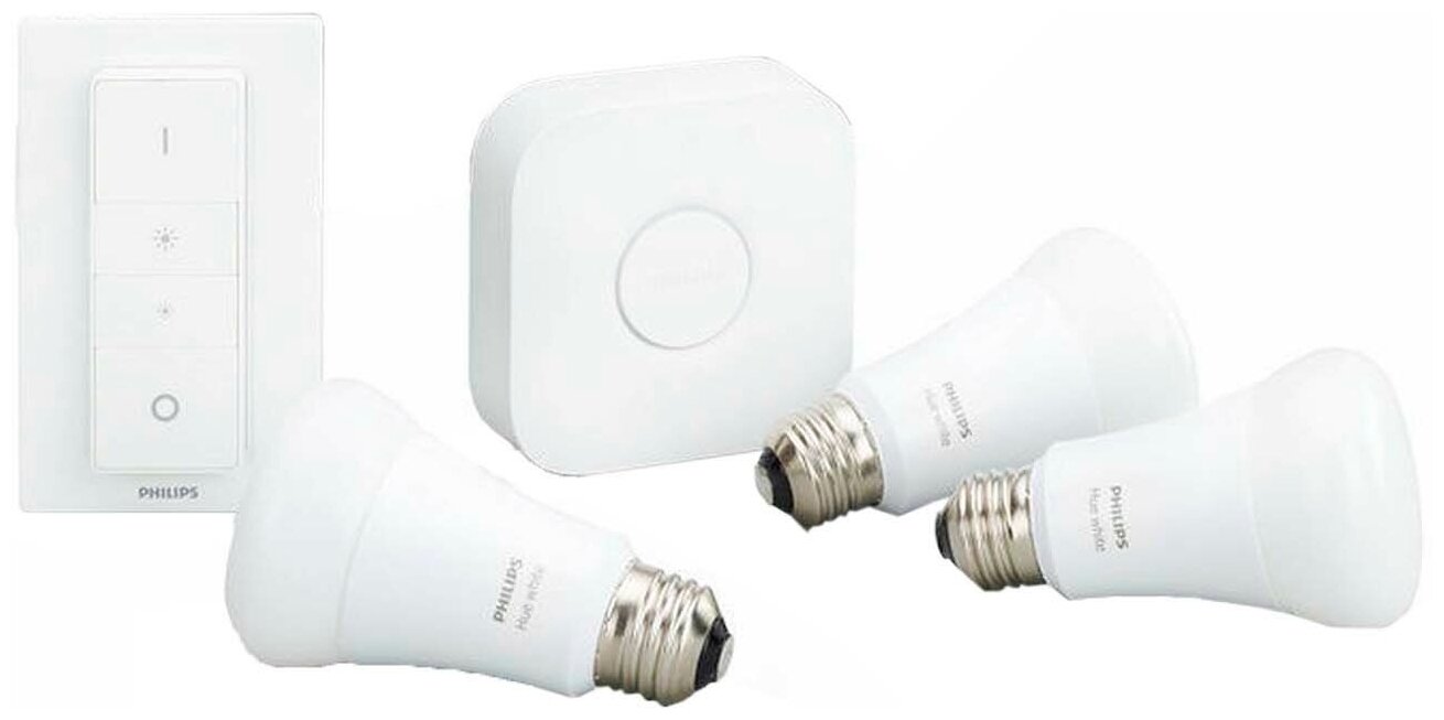 Организуйте умное освещение, начав с базового комплекта, который включает в себя три умные лампы, обеспечивающие мягкий белый свет, блок управления Hue и пульт дистанционного управления. Этого комплекта достаточно для управления домашним освещением и изучения его захватывающих возможностей.