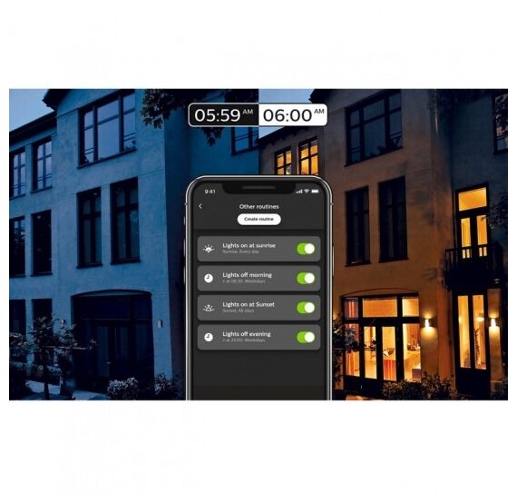 Запланируйте включение освещения с учетом разных видов домашней деятельности в приложении Philips Hue, когда вас нет дома. Интеллектуальные лампы будут активироваться в заданное вами время, а иногда за несколько минут до или после начала соответствующего занятия, тем самым точно имитируя ваше присутствие дома.