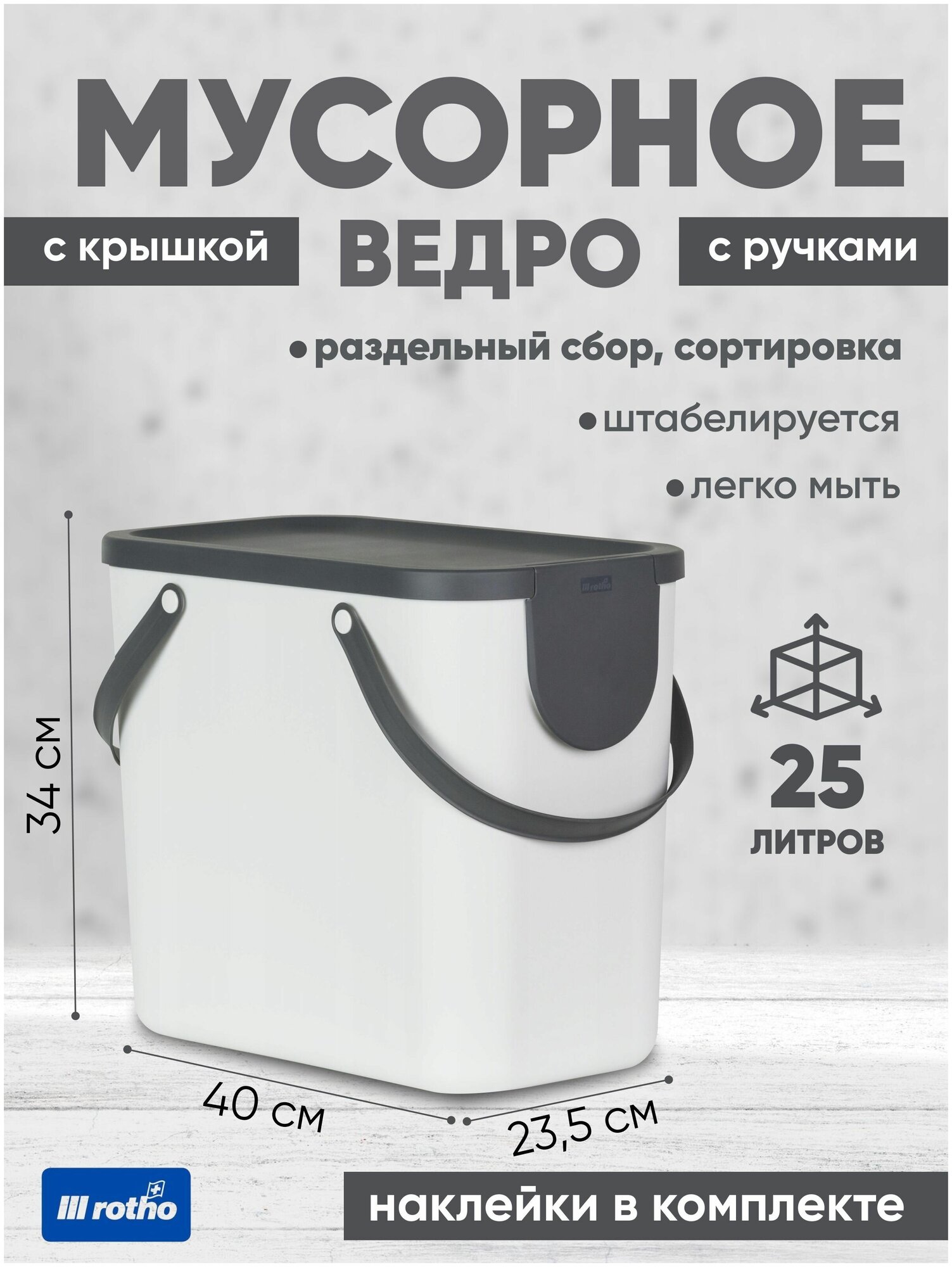 Контейнер для сортировки мусора Rotho Albula 25л белый (10249 белый)