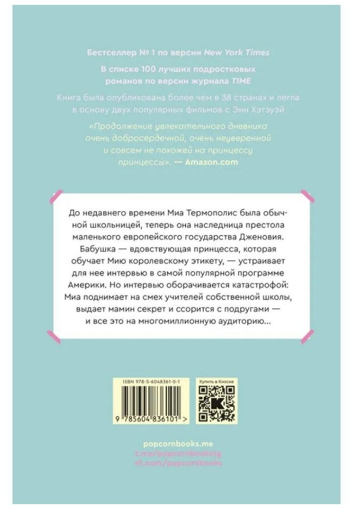 Прочла первую часть и осталась в таком огромном восторге, что как только она вышла у нас. И опять погрузилась в мир простой девчонки, которой случайно пришлось стать принцессой. Девочки с нашими проблемами, сомнениями, страхами. Буквально не книга, а психотерапия. Для меня читать одно удовольствие: просто, но интересно; интригует, но не грузит; вымышленная история, но вроде и обо мне.