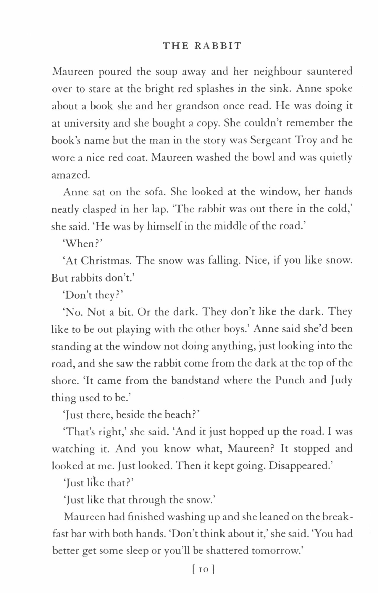How much do we keep from the people we love? Why is the truth so often buried in secrets? Can we learn from the past or must we forget it? Standing one evening at the window of her house by the sea, Anne Quirk sees a rabbit disappearing in the snow. Nobody remembers her now, but this elderly woman was in her youth a pioneer of British documentary photography. Her beloved grandson, Luke, now a captain with the Royal Western Fusiliers, is on a tour of duty in Afghanistan, part of a convoy taking equipment to the electricity plant at Kajaki. Only when Luke returns home to Scotland does Anne’s secret story begin to emerge, along with his, and they set out for an old guest house in Blackpool where she once kept a room.