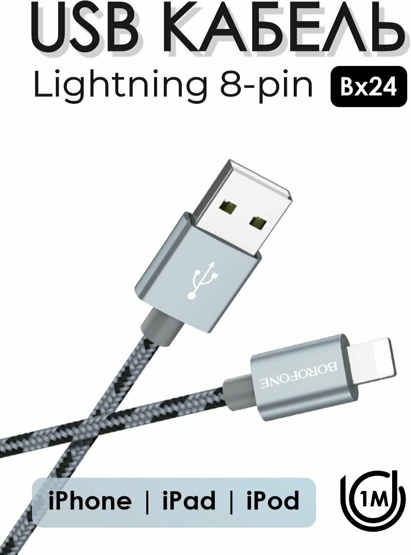 Дата-кабель Borofone BX24 Ring USB - Lightning 2.4A серый (03385) (УТ000023322)