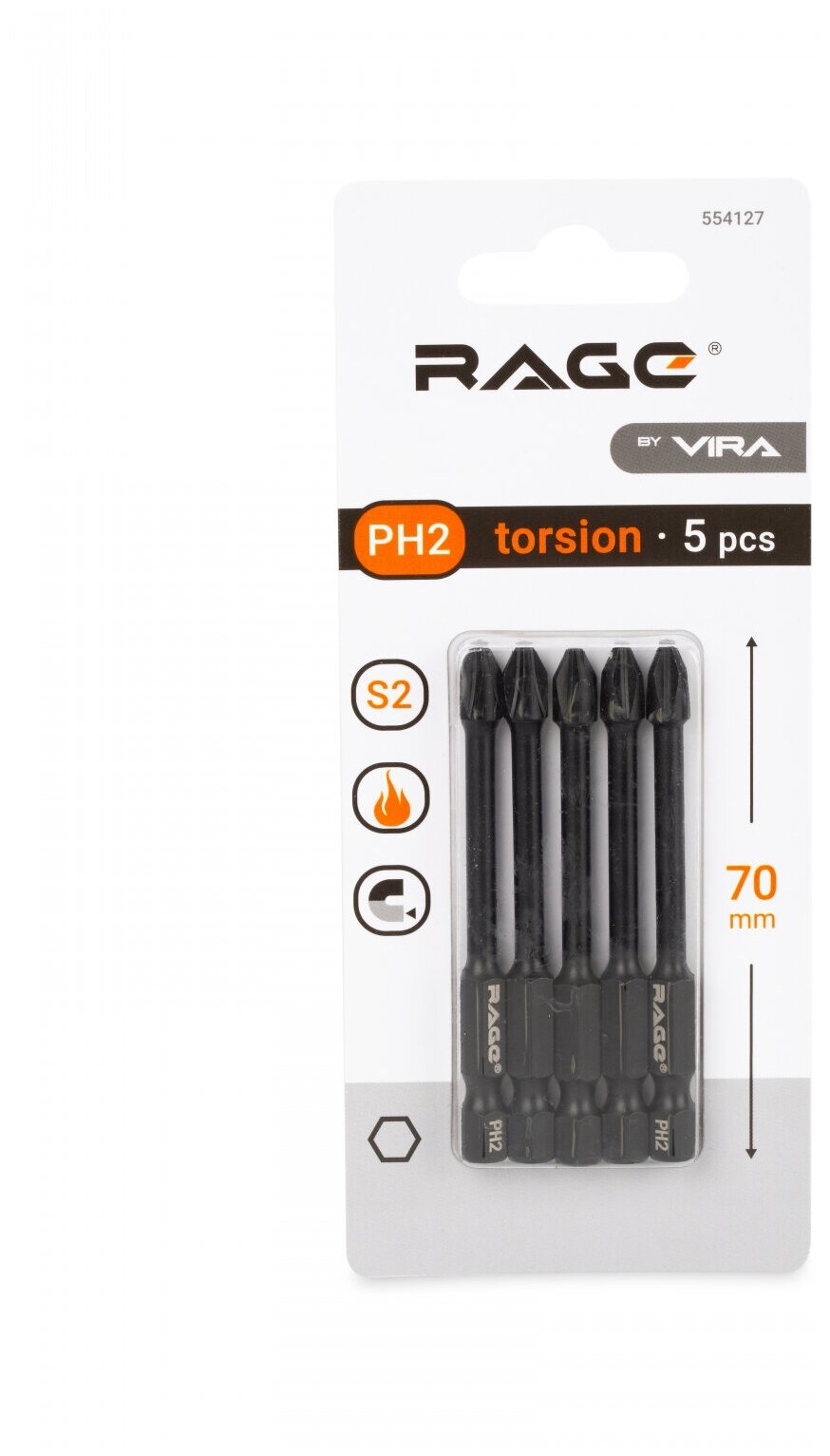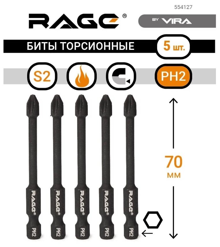 бита VIRA S2 PH2x70мм торсионная 5шт 554127