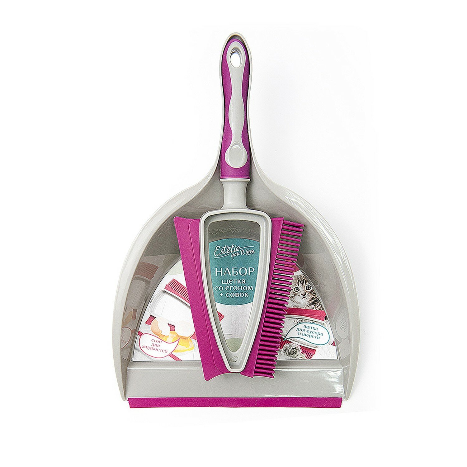Набор для уборки от You'll love идеально подходит для уборки различных загрязнений: резиновый сгон для уборки жидкостей, резиновая щетка для мусора и шерсти. Резиновую щетку и сгон легко очистить от мусора просто смыв сор и грязь проточной водой. Набор станет универсальным помощником в доме.