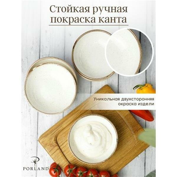 Набор соусников диаметром 9 см подойдет для сервировки к аперитиву маленьких порций закусок из крекеров, оливок, ветчины, сыра. В маленьких аккуратных чашах закуски украшают стол, не занимая много места. Удобно подавать в них соусы, сухарики и свежую зелень к супам или горячим вторым блюдам. Также эти соусники удобно использовать для сервировки специй и пряностей, которые всегда должны быть под рукой во время приготовления пищи или на застолье. Красивая и удобная сервировка маленьких порций.