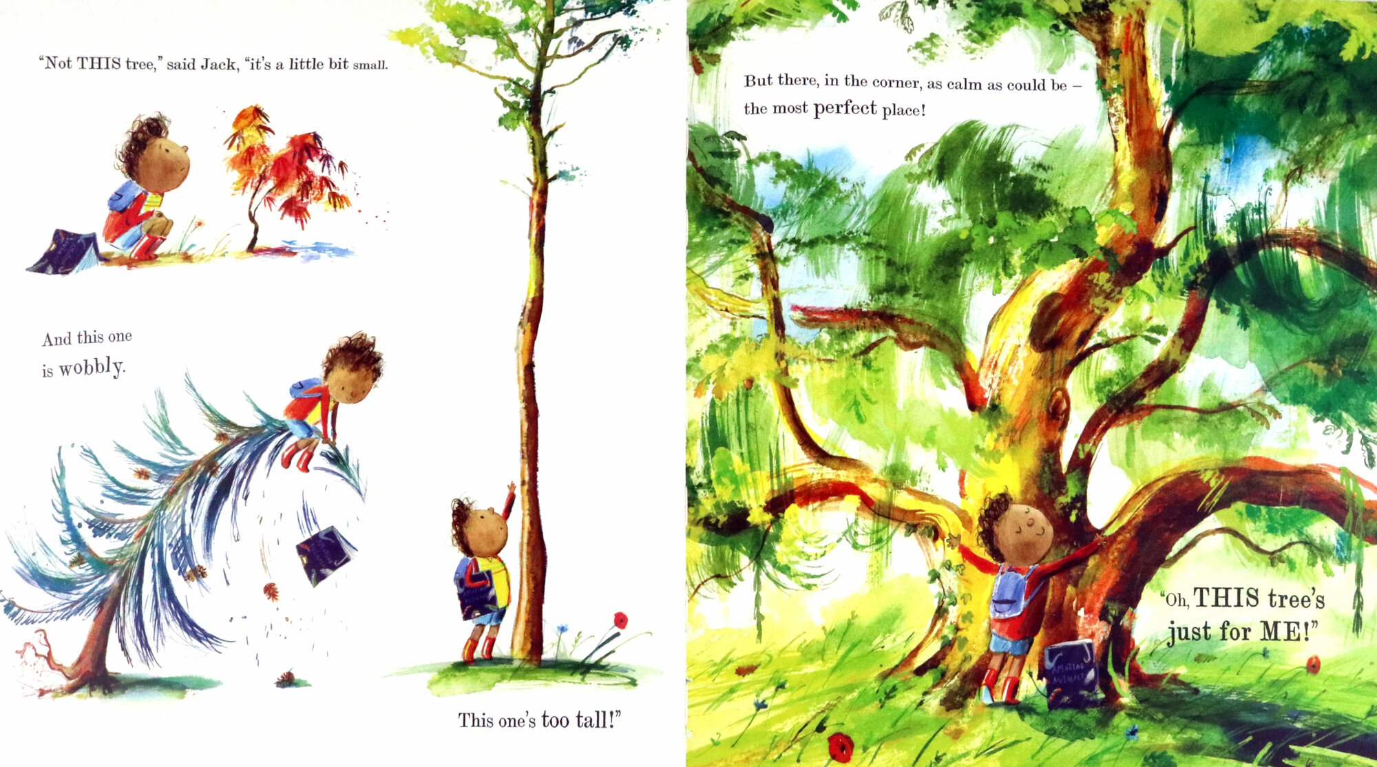Jack has a new book, and he's found the perfect place to read in peace - a big, beautiful tree.