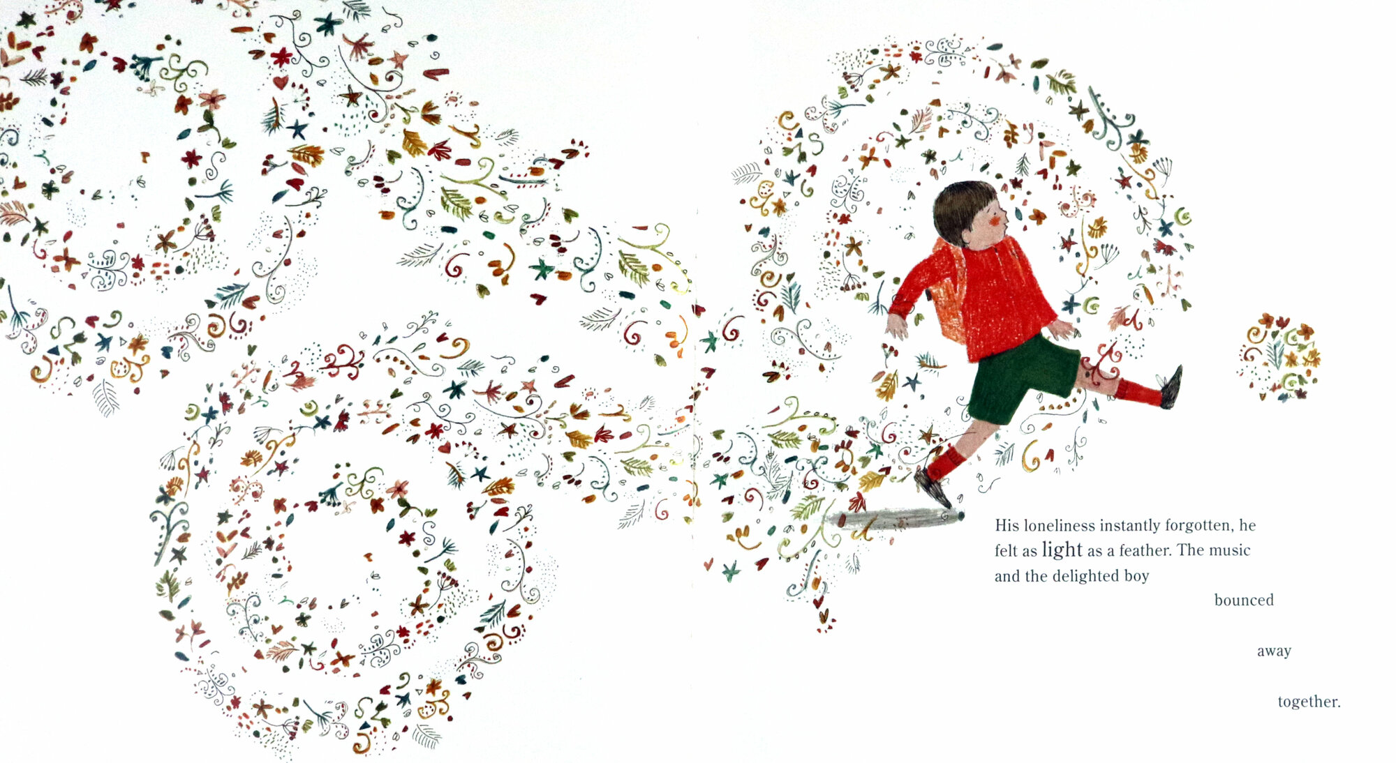 Day after day, the song drifts on to the breeze and through the town. It makes the old feel young and comforts the lonely. It fills the whole town with joy and kindness. No one knows who sings the song, but they know it is good.