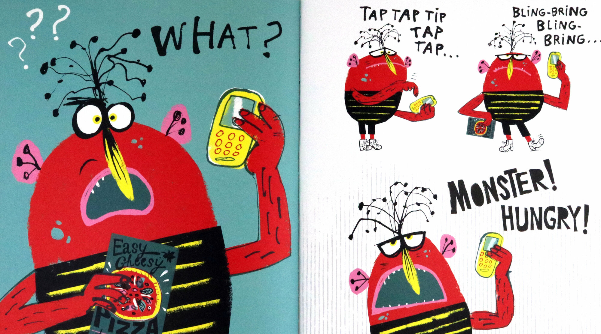 Monster is HUNGRY. He wants PIZZA. And he's got a PHONE!