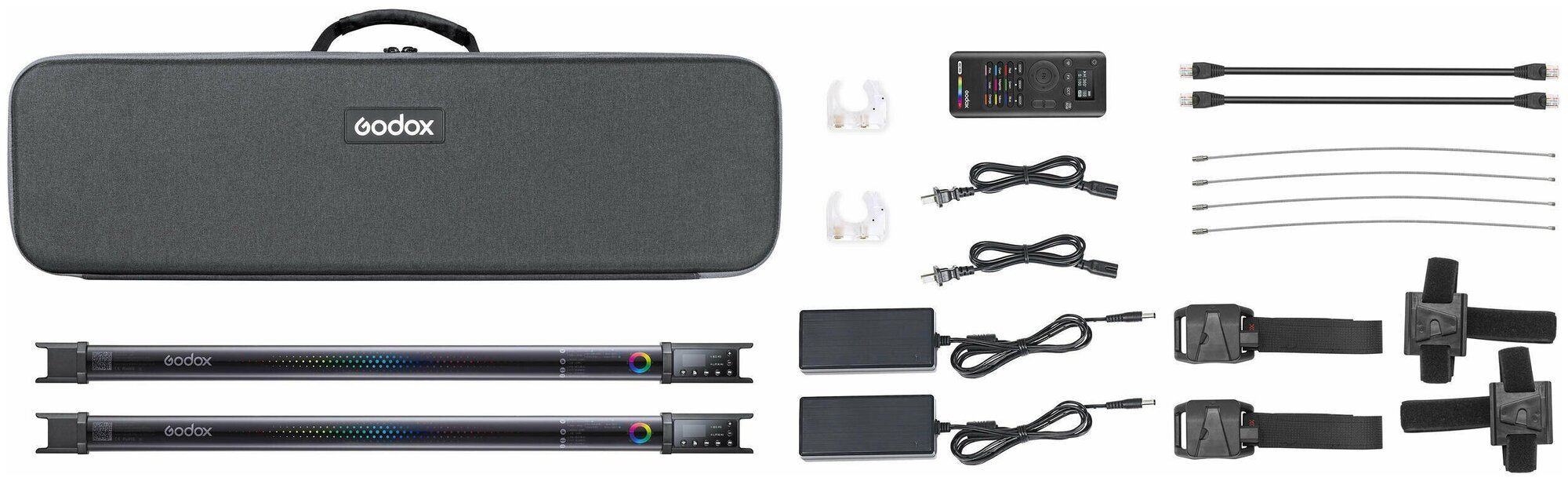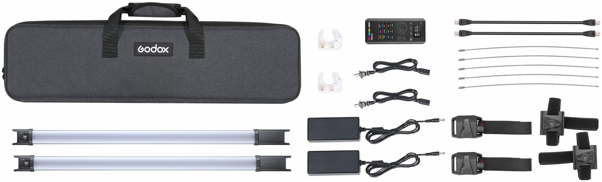 Комплект светодиодных осветителей Godox TL60*2 kit – это комплект, включающий в себя две легкие и компактные световые трубки Godox TL60, выдающие яркий световой поток мощностью до 18 Вт в режиме bi-color с цветовой температурой 2700~6500К или цветной световой поток режиме RGB/HIS/спецэффектов, пульт дистанционного управления осветителями, аксессуары для крепления или подвешивания осветителей и кейс для хранения и транспортировки.