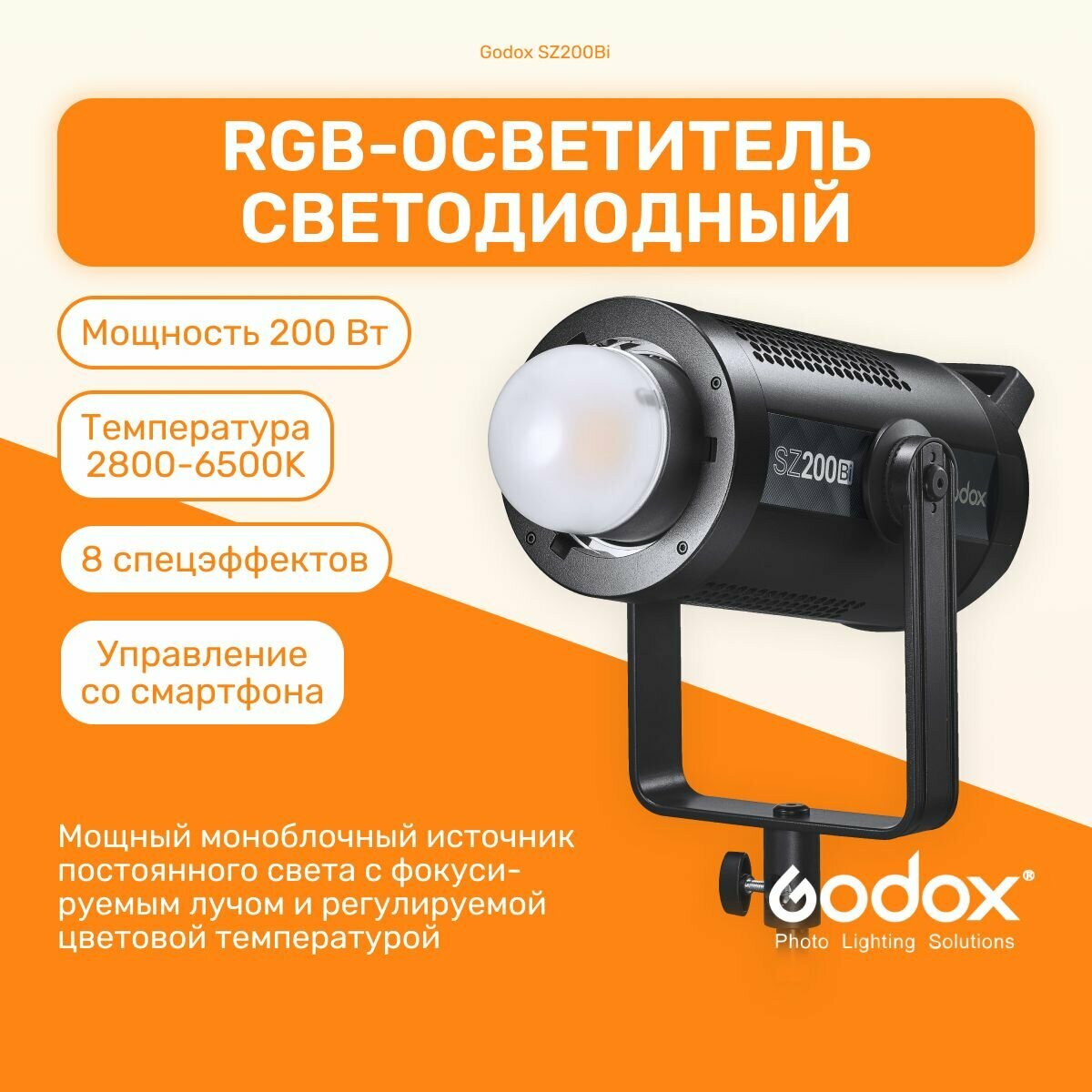 Осветитель светодиодный Godox SZ200Bi фокусируемый