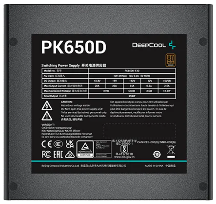 Блоки питания DeepCool серии PK-D обеспечивают надежность питания и низкий уровень шума во в течении всего периода эксплуатации, а энергоэффективность соответствует требованиям сертификата 80 PLUS Bronze.
