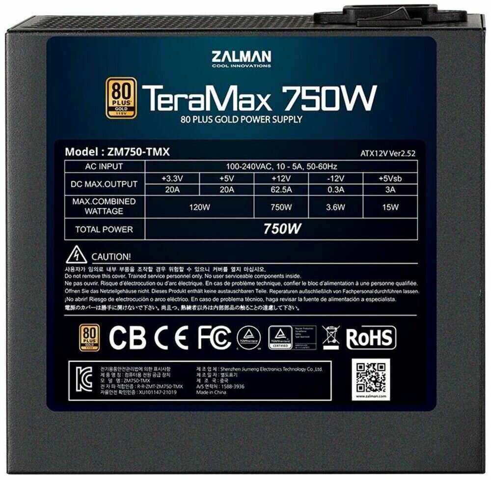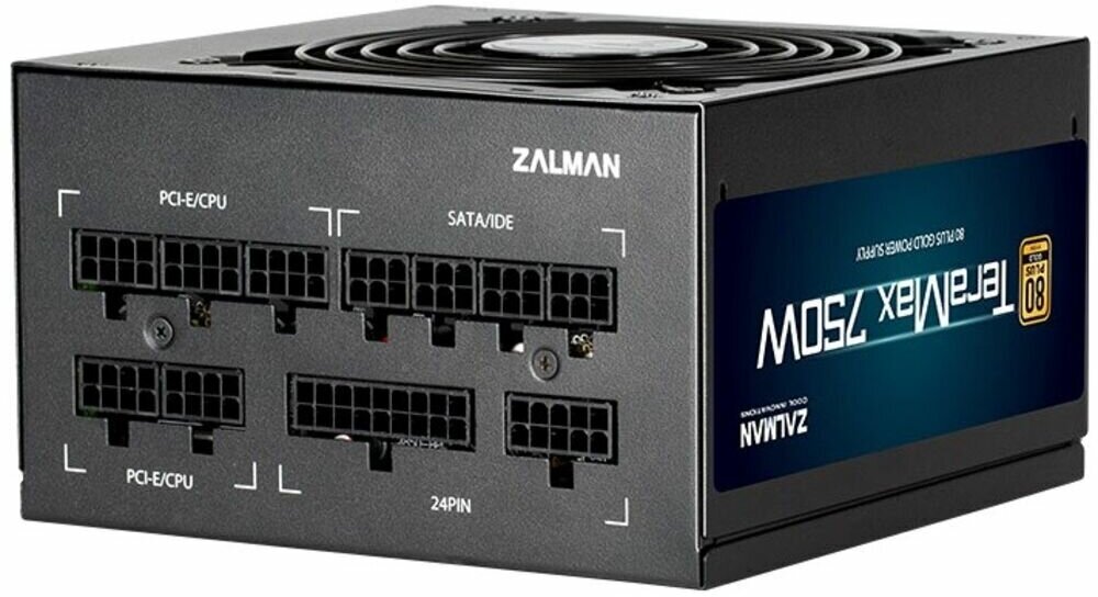 | Прочие особенности и свойства | Блок питания ZALMAN ZM750-TMX представляет собой полностью модульное, производительное решение для игровых систем и рабочих станций, выполненное в формате ATX. Данная модель отличается высокой производительностью и эффективностью. Номинальная мощность составляет 750 Вт., Блок питания ZALMAN ZM750-TMX использует для основного подключения разъем (20+4)-pin. Для подачи энергии на процессор предусмотрен 2 выхода (4+4)-pin, а для видеокарты — 4 выхода типа (6+2)-pin, что позволяет использовать высокопроизводительные решения. Помимо этого модель оснащена 8 разъемами 15-pin для подключения SATA-устройств, а также 3 портами Molex. |