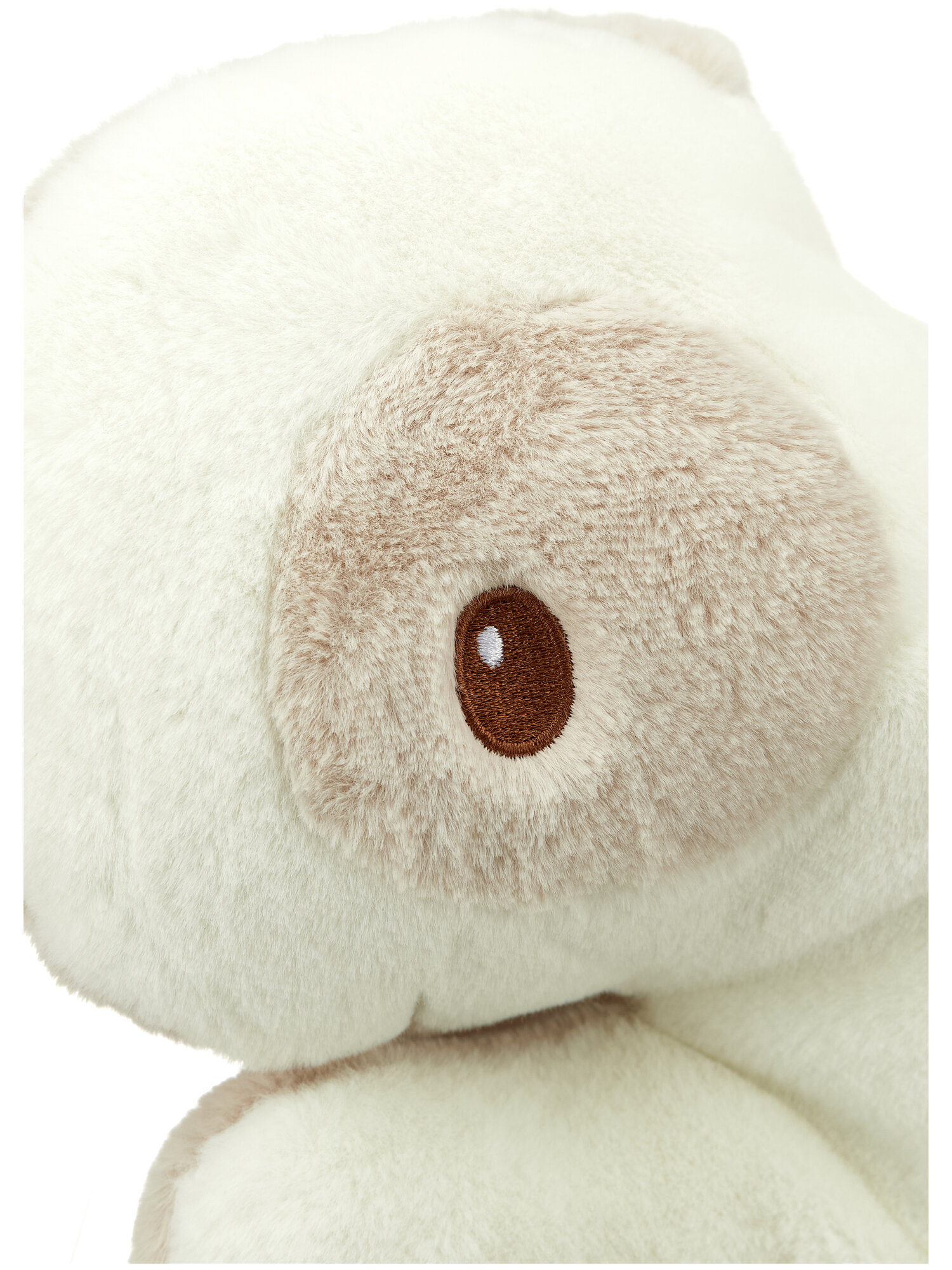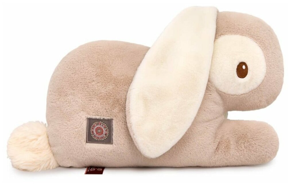 Заяц-подушка Оникс, сшит из бархатистого софта нежных молочно бежевых тонов, с вышитыми глазками и меховым хвостиком.