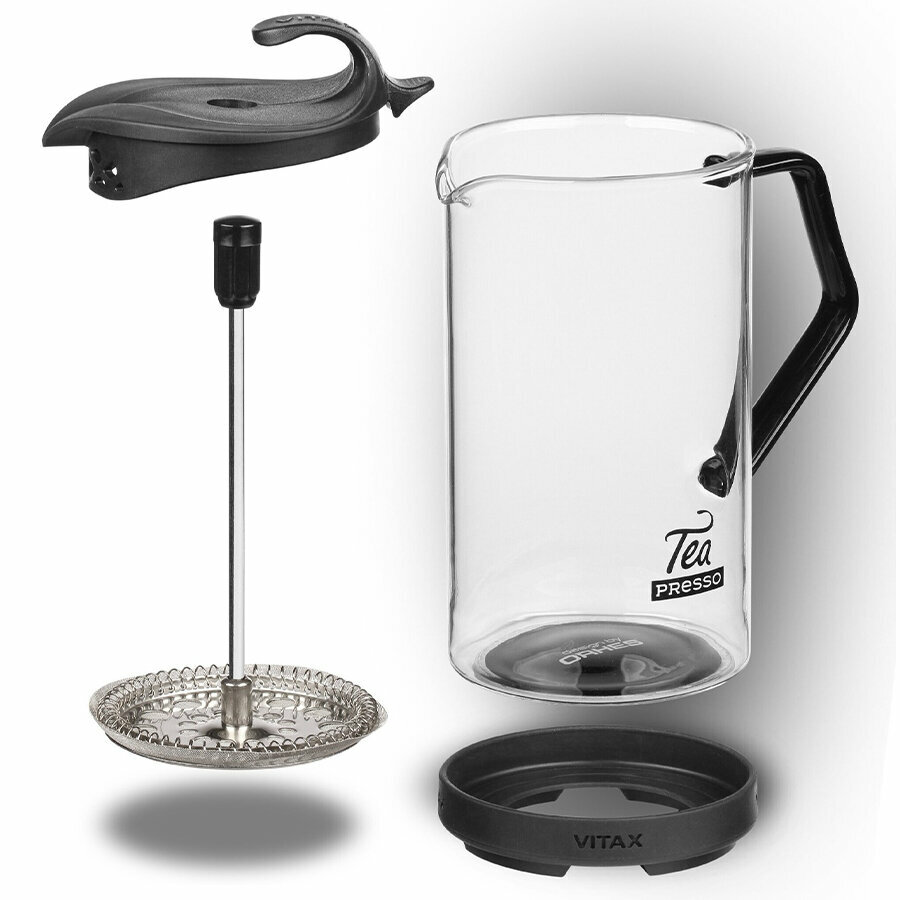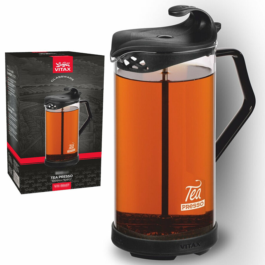 Лаконические дизайнерские решения в современном Скандинавском стиле- это то, за что любят бренд Vitax. Высокое качество исполнения, отвечающее высоким требованиям ресторанно-гостиничного бизнеса и ценителей горячих напитков. Корпус выполнен из высококачественного и термостойкого боросиликатного стекла, поршень и фильтр изготовлены из пищевой нержавеющей стали 18/10, термо-сберегающая крышка из двухкомпонентного пластика и силикона, съёмное защитное дно из термостойкого силикона. Подходит для использования в посудомоечной машине. Френч-пресс идет в фирменной коробке и его сразу можно преподнести в качестве подарка любителю чая или ароматного кофе.