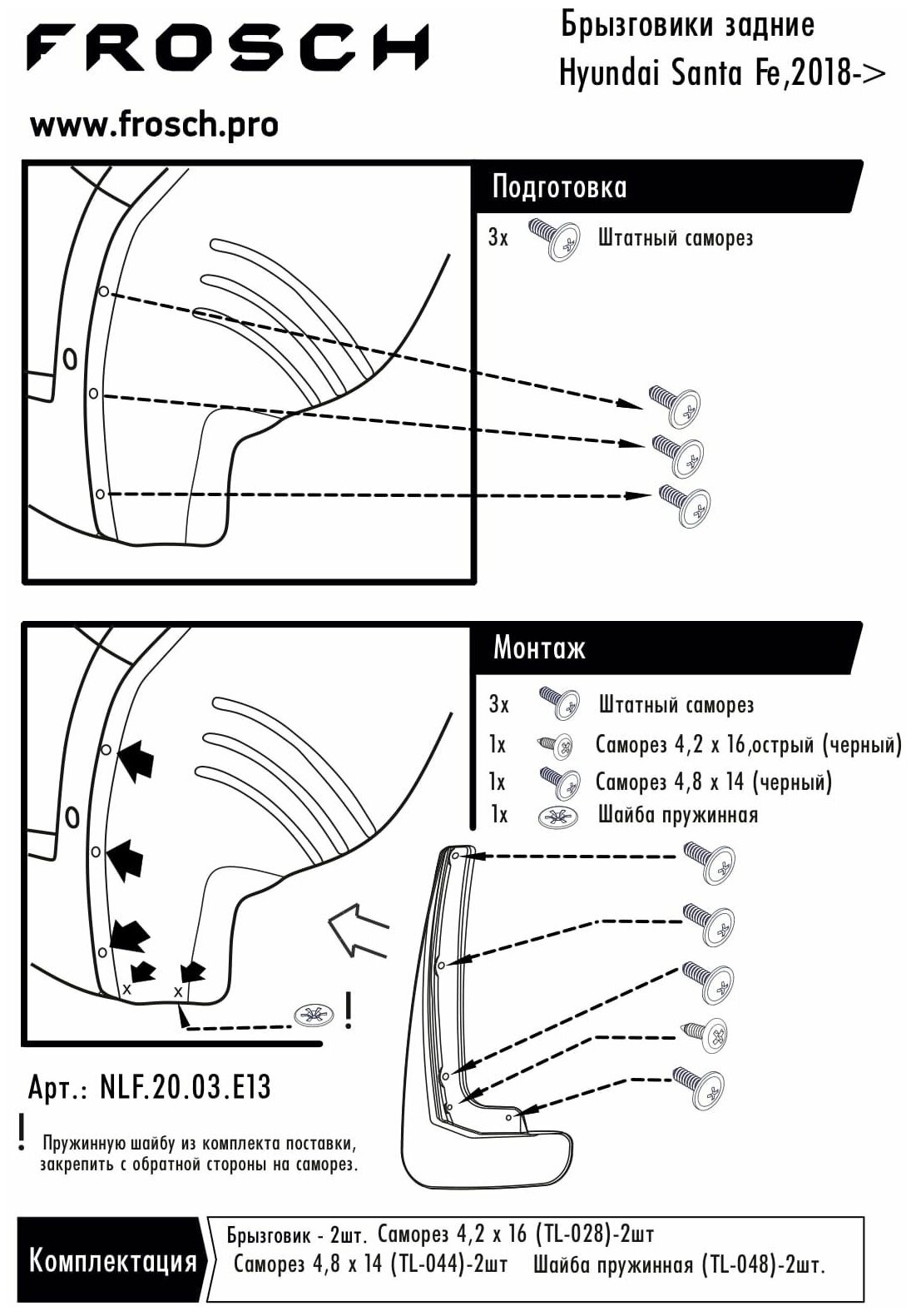 Брызговики задние HYUNDAI Santa Fe 2018 полиуретановые в пакете 2шт Frosch (NLF.20.03.E13)