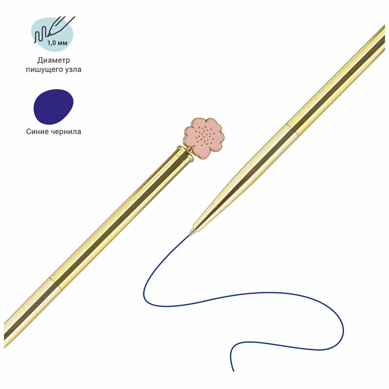 Стильная шариковая ручка в металлическом корпусе станет функциональным украшением вашего рабочего стола. Изящные и плавные линии, декоративные детали станут неотъемлемой частью праздничной и радостной атмосферы. Благодаря упаковке с голографическими элементами ручка может стать приятным подарком. Диаметр пишущего узла составляет 1 мм, а значит ручка подойдёт для мягкого и быстрого письма. Толщина линии составляет 0,8 мм. Длина сменного стержня 67 мм. Благодаря чернилам синего цвета ручку можно использовать в работе или учёбе на постоянной основе.