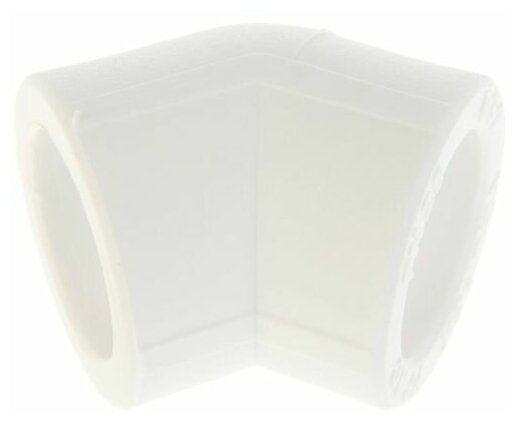Угол 45 градусов используется для изменения направления трубопровода. Представляет собой белый полипропиленовый фитинг длиной 2,6 см с входным диаметром 32 мм. Области применения: системы отопления и кондиционирования, сети горячего и холодного водоснабжения, в том числе с питьевой водой. Угольник с трубами соединяется пайкой. При эксплуатации фитинг выдерживает давление до 25 бар и температуру до 90 °C.