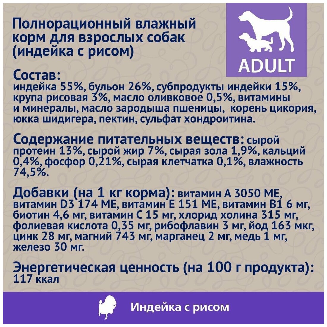 | Вкус/ингредиенты | Индейка |