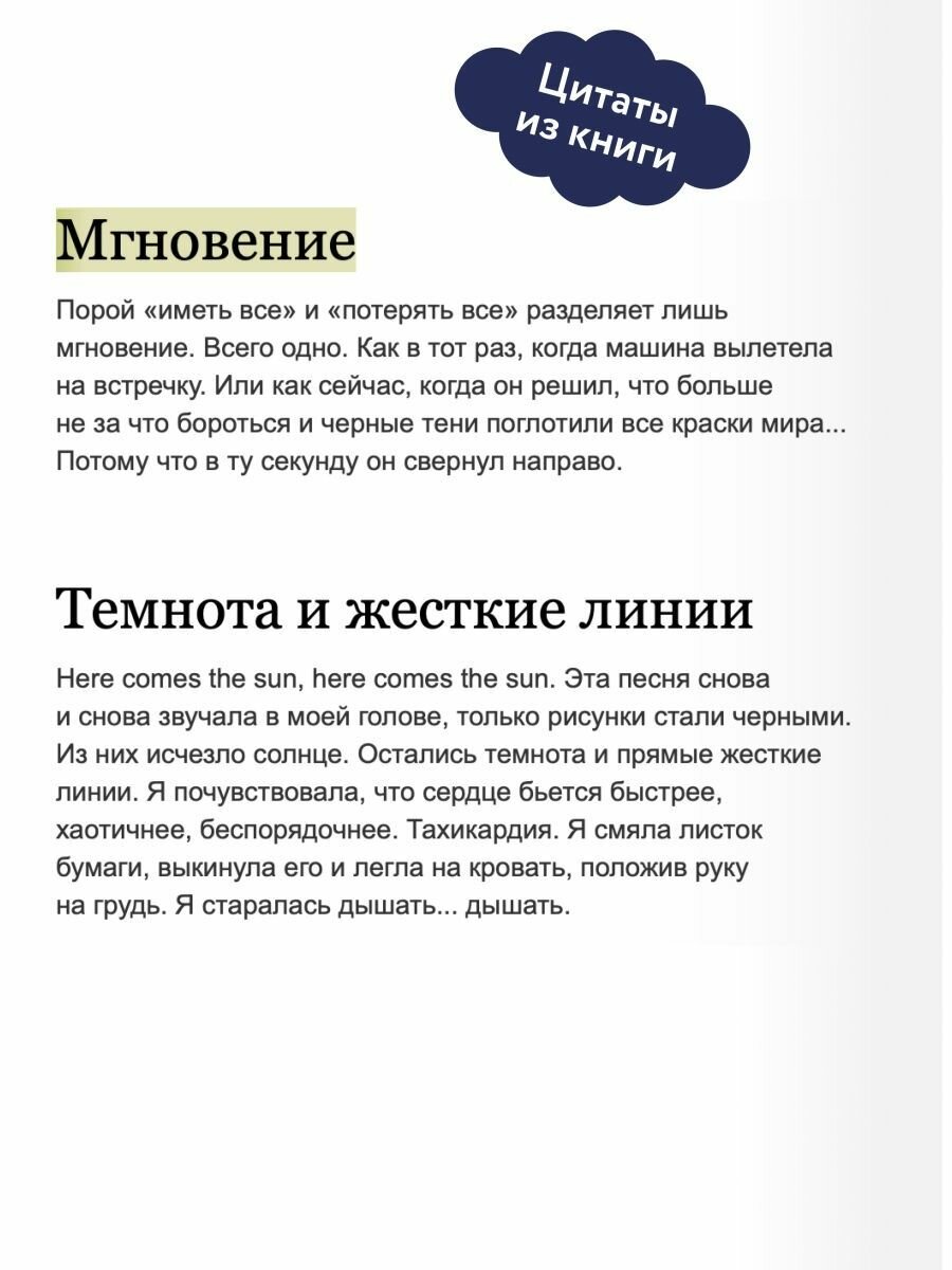 После несчастного случая, в котором погибли родители Леи, ее жизнь превратилась в сплошное черное пятно. Она замкнулась в себе, ко всему потеряла интерес и перестала рисовать. Пока старший брат зарабатывает на ее обучение в университете, за Леей присматривает его лучший друг, Аксель. Он по-своему пытается помочь девушке заново обрести себя и собрать воедино кусочки той яркой личности, которую видит в ней. Но Аксель не знает, что Лея давно влюблена в него и что вскоре его жизнь изменится окончательно и бесповоротно.